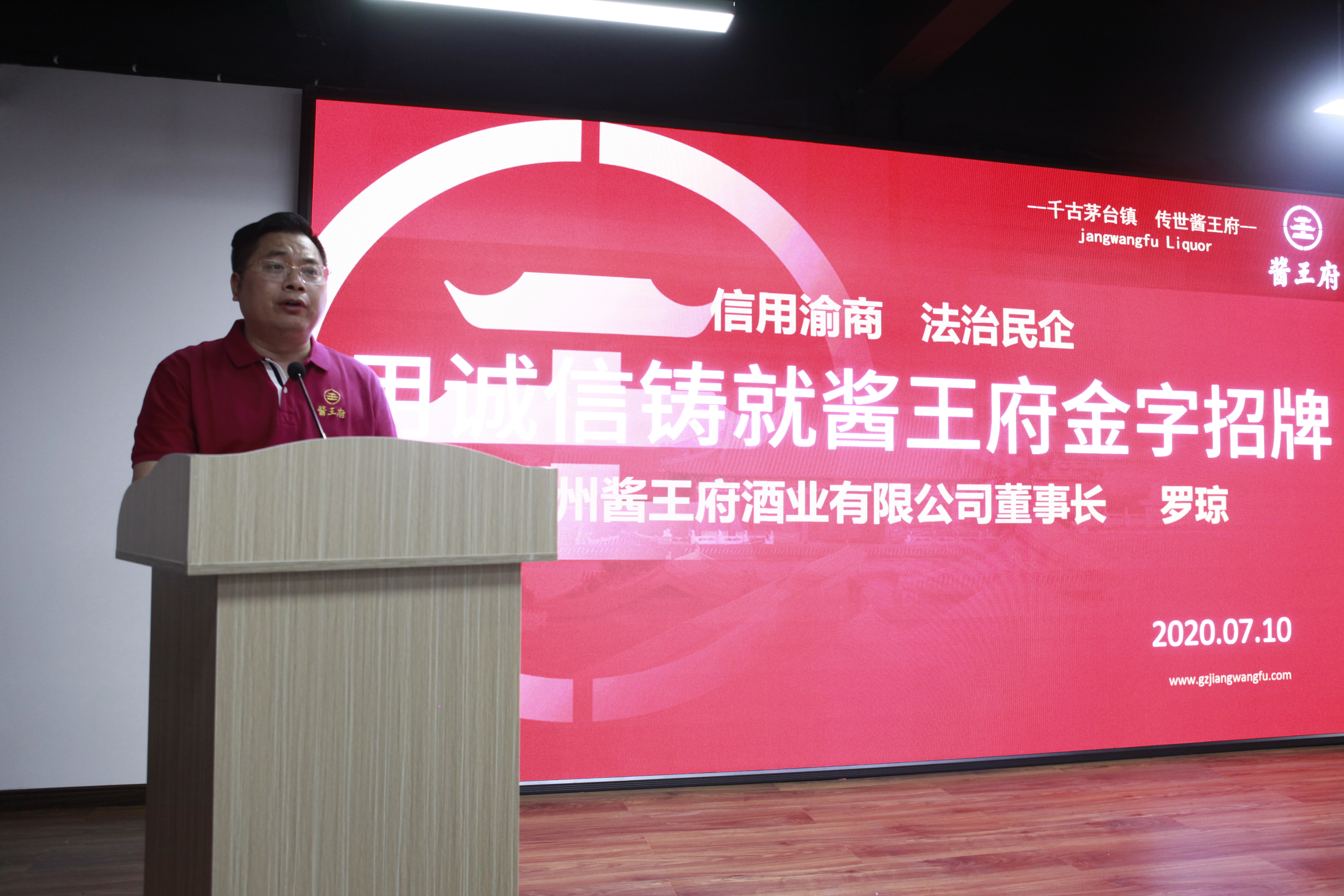 7月10日下午,重庆市非公有制企业信用建设促进会一届二次会员大会暨一届四次会长会在副会长单位贵州酱王府酒业的旗舰品鉴馆举行。市工商联副主席王进,市总商会副会长、信促会执行会长、学平大健康产业集团董事长彭学平,信促会顾问、原市质监局副局长吕长富,信促会顾问、企业管理资深专家关书敏,信促会顾问、西南政法大学经济法学院副教授叶世清博士,市工商联联络部副部长杨柳等领导和专家莅会指导。
