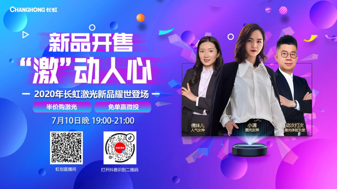 7月10日晚,全球首款触摸激光电视云发布暨长虹超品日激光秒杀活动,在“虹创有品”微赞直播间 & “长虹激光电视”抖音直播间,双平台同步开启。