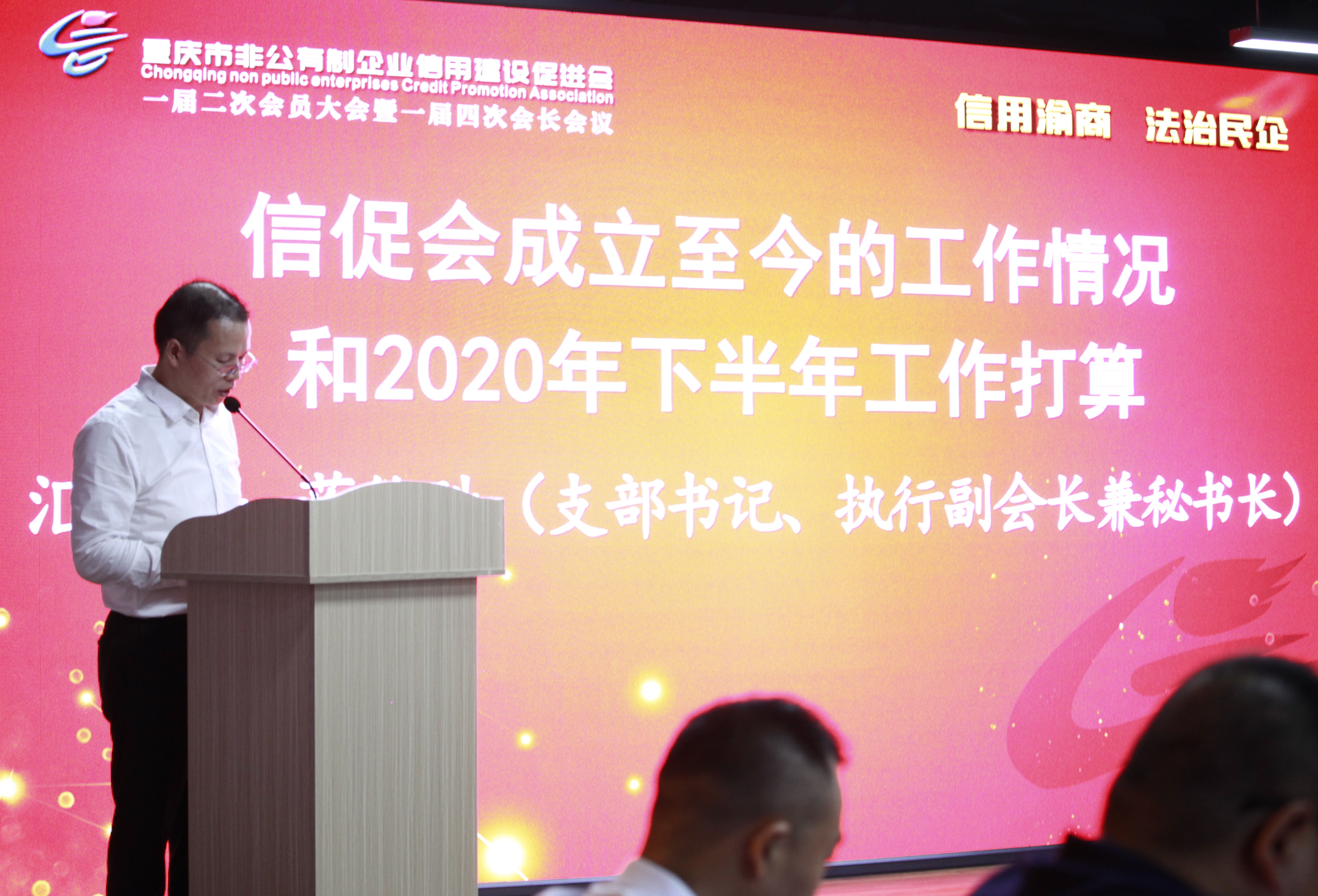 “竭力做‘渝商’企业身边的‘增信’朋友!”7月10日下午,在重庆市非公有制企业信用建设促进会一届二次会员大会暨一届四次会长会上,支部书记、执行副会长兼秘书长蒋维胜汇报促进会成立至今的工作情况和2020年下半年工作打算时,一语道破信促会的价值追求。