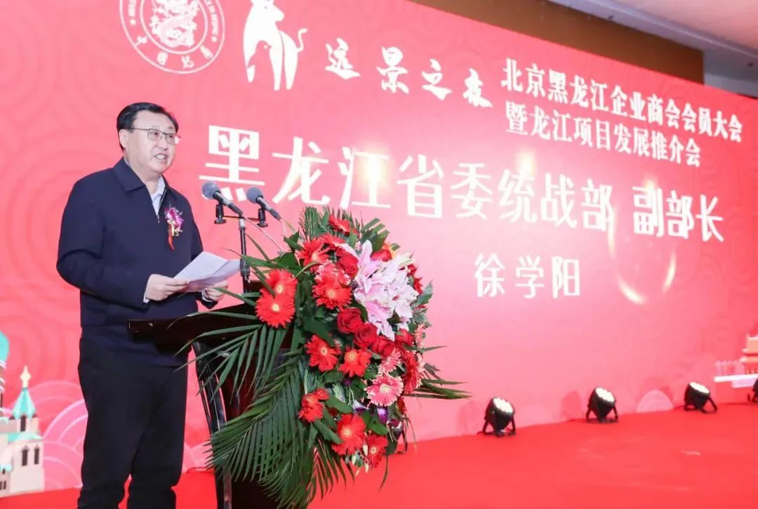 黑龙江省委统战部副部长徐学阳代表省委统战部向大会的召开表示祝贺,并对全体在京龙商为两地经济发展和抗击疫情中的突出贡献表示衷心的感谢。徐学阳表示,黑龙江是投资兴业的宝地。“十四五”时期,黑龙江将在现代产业体系建设、农业现代化建设、创新驱动发展、全面深化改革、更高水平对外开放、生态文明建设、城乡区域协调发展、社会文明程度提高、民生福祉改善、社会治理效能10个方面取得新突破,为民营企业带来重要发展机遇。他希望龙商成为宣传大使,让更多地区了解黑龙江、认同黑龙江、投资黑龙江。