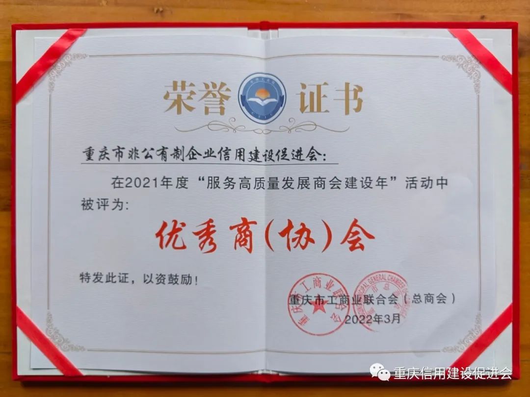 重庆市非公有制企业信用建设促进会喜获2021年度“服务高质量发展商会建设年”优秀商协会 今年有望申报公示一批“诚信渝商”