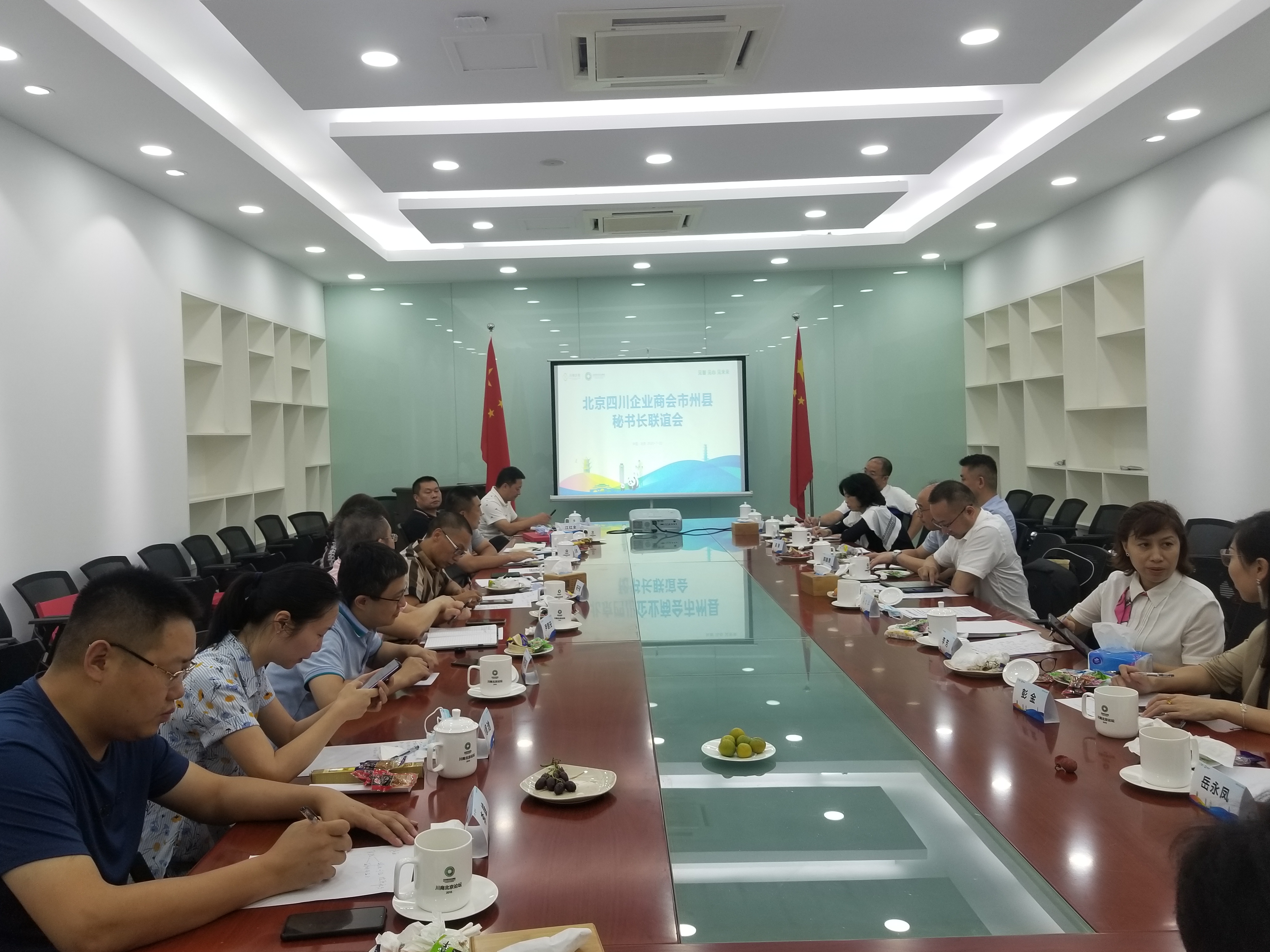 新冠无情,川商有爱。2020年7月22日下午,北京四川企业商会组织召开了『北京四川各市州县秘书长联谊』聚会活动。本次活动在四川五粮液龙爪树宾馆三号楼北京川商会新办公室大会议室举行。会议中,各位秘书长『忆往昔、看今朝、展未来』,分享了各自的经验和感悟,以及此次疫情所带来的机遇、挑战。此次联谊活动,进一步促进了各商会间的了解和认识,也更加坚定了合作共赢,共举『川商一面旗』的信心。