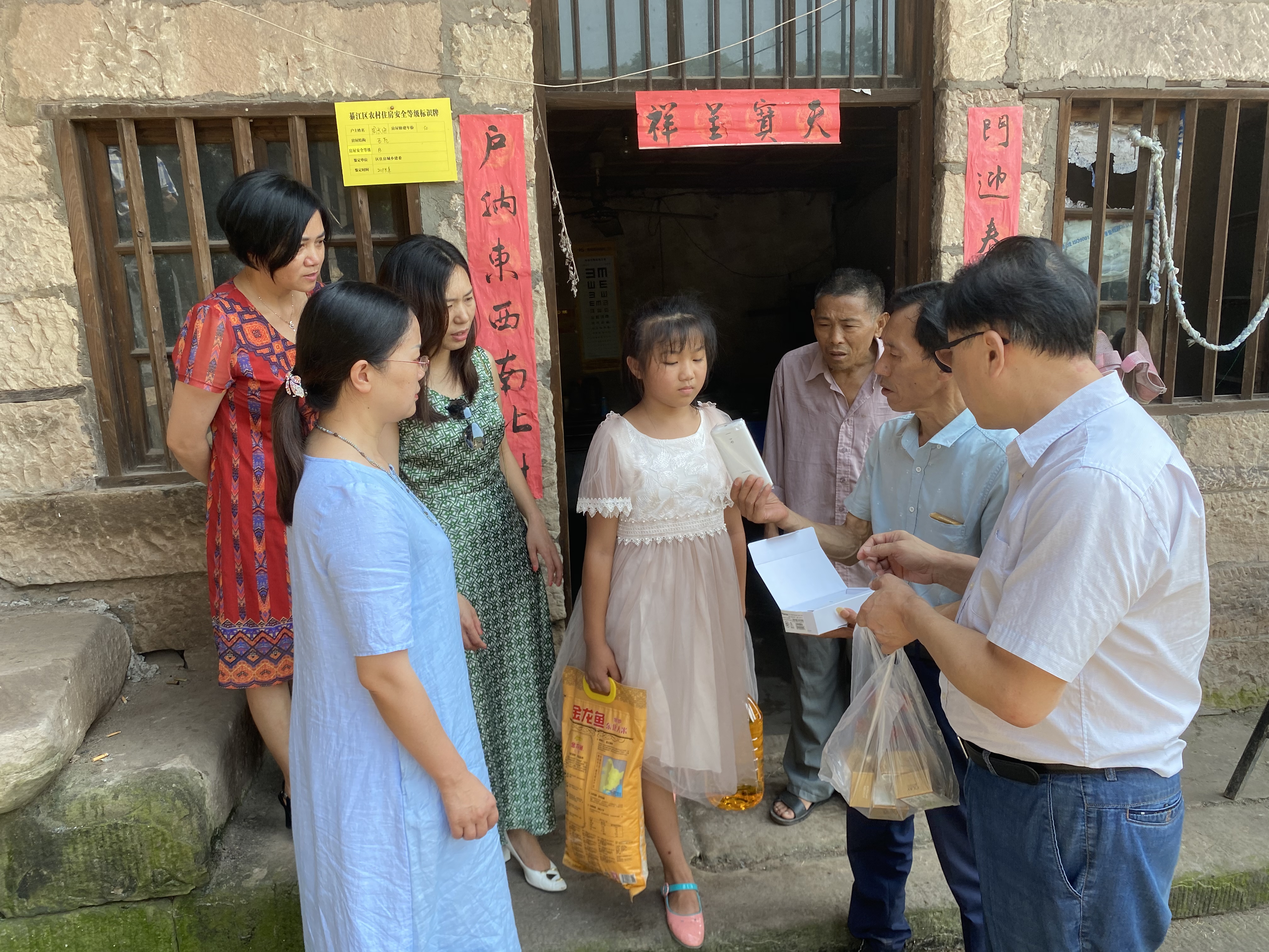 2020年7月23日上午,由重庆市上海商会与重庆市慈善总会牵头发起的“关爱特困,帮困暖心”“关爱儿童,圆梦之旅”助力脱贫攻坚活动今天在綦江落地。在綦江区民政局副局长邹开梅,区民政局副调研员、区慈善会秘书长李益莉,文龙街道宣传委员杨春陪同下,我会秘书长姚庆伟受商会会长韦根委托,带领商会副会长、妇委会主任伍沛臻,会员企业郑华驱车到綦江区文龙街道春灯村特困户彭可欣学生家中帮扶救助、走访慰问,实地了解了特困户家庭实际困难、学业情况。在区慈善会、区民政局的见证下,为特困户家庭小朋友彭可欣送上了新手机、衣服等生活用品,商会秘书长姚庆伟代表会长韦根将首次资助的学费、补助费共计4500元送给特困家庭。