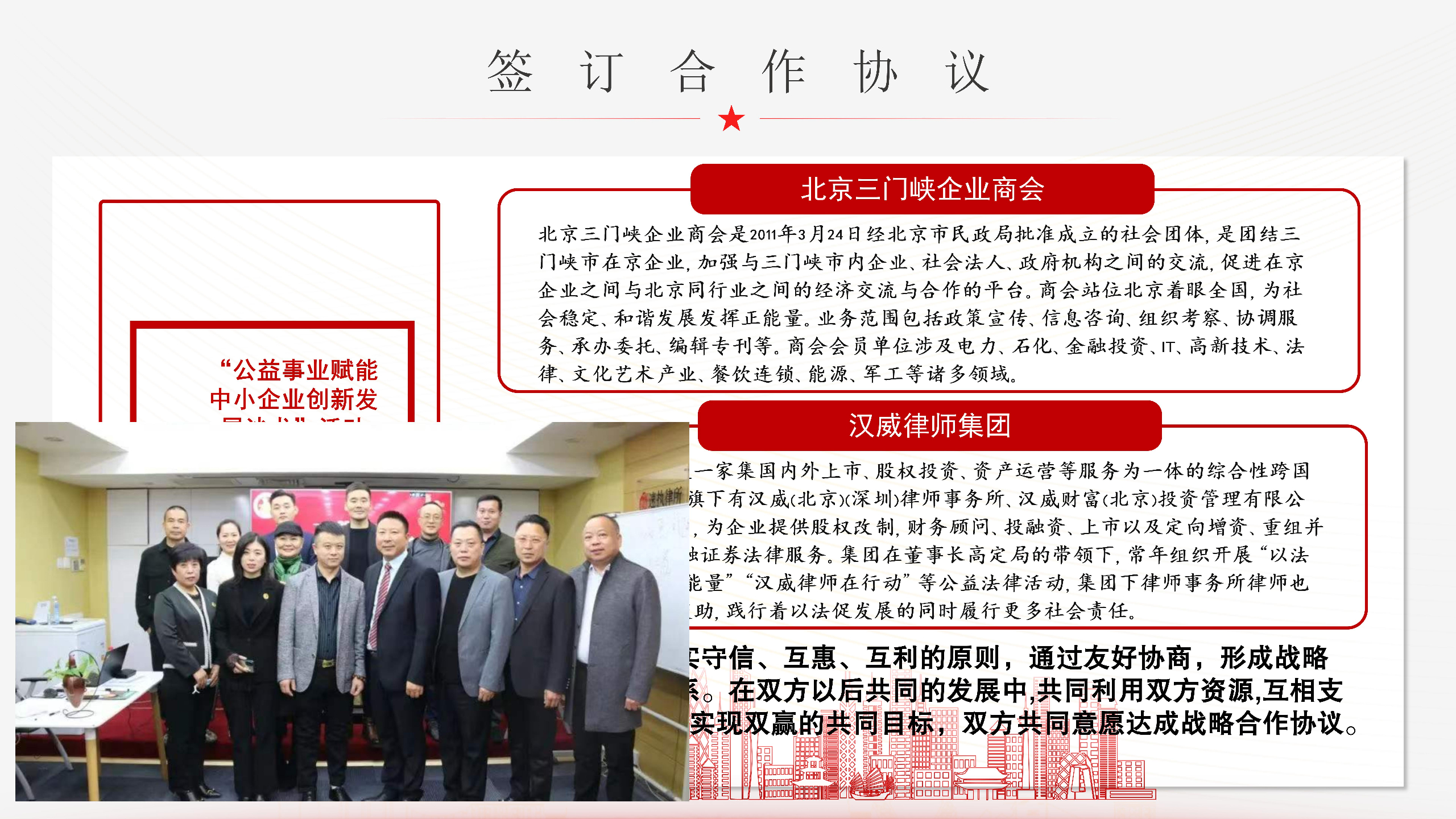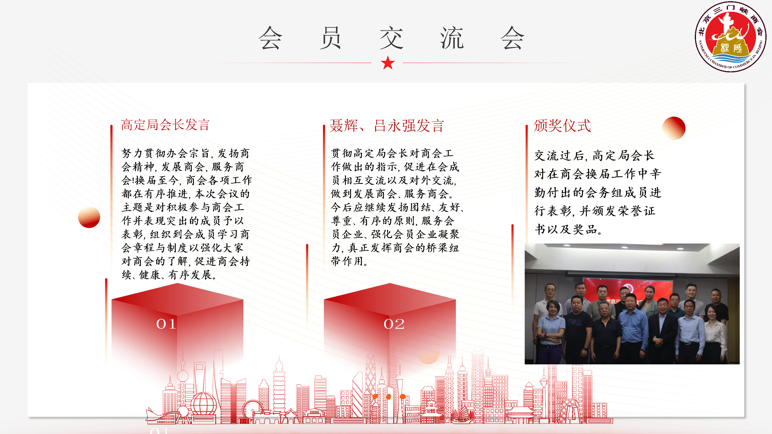 商会二届成立于2021年4月24日 .在这一年来,充分发挥了商会的职能作用。开展了许许多多有声有色的活动 ,积极和服务于全民营企业取得沟通。为促进民营经济健康发展做了大量的工作 ,为会员办了很多实事,使民营经济规模不断扩大,发展水平不断提升。与此同时,商会的凝聚力不断增强,会员队伍也越来越壮大,凸现出强劲的活力和旺盛的生命力。这些成绩的取得,离不开家乡政府正确的领导,离不开北京有关部门的大力支持与配合的,更离不开商会一班子人的勤奋努力与艰苦奋斗!