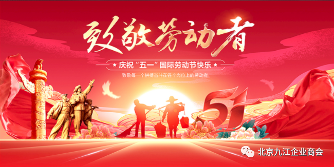 风日晴和五月天,抗疫复工四处展。在“五一”国际劳动节来临之际,我仅代表北京九江企业商会,对支持关心我们商会发展的各级领导,各界朋友和商会全体会员致以诚挚的节日问候!