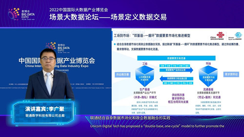 5月26日,备受瞩目的中国国际大数据产业博览会以线上形式如期举办。“场景大数据论坛”作为本届数博会分论坛之一,以“场景定义数据交易”为主题,吸引数十位院士、专家、产业领军人物,围绕数据交易的法律法规、技术创新、成果经验等展开深度分享,传递场景大数据最新成果和观点,加速推动数据要素市场化流通。联通数字科技有限公司总裁李广聚受邀参会,并以《“双价值”驱动数据交易从“工场”到“市场”》为主题发表演讲。