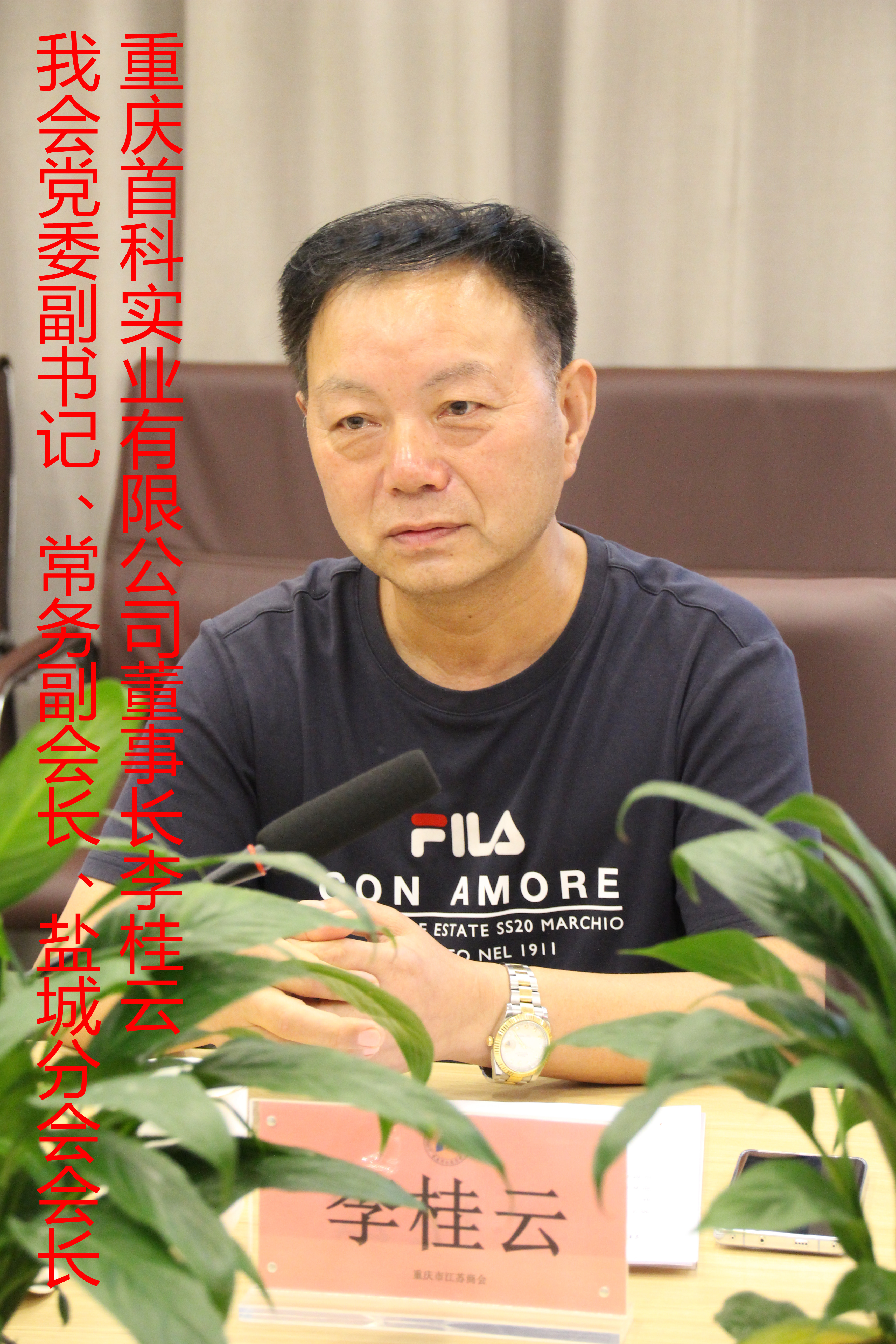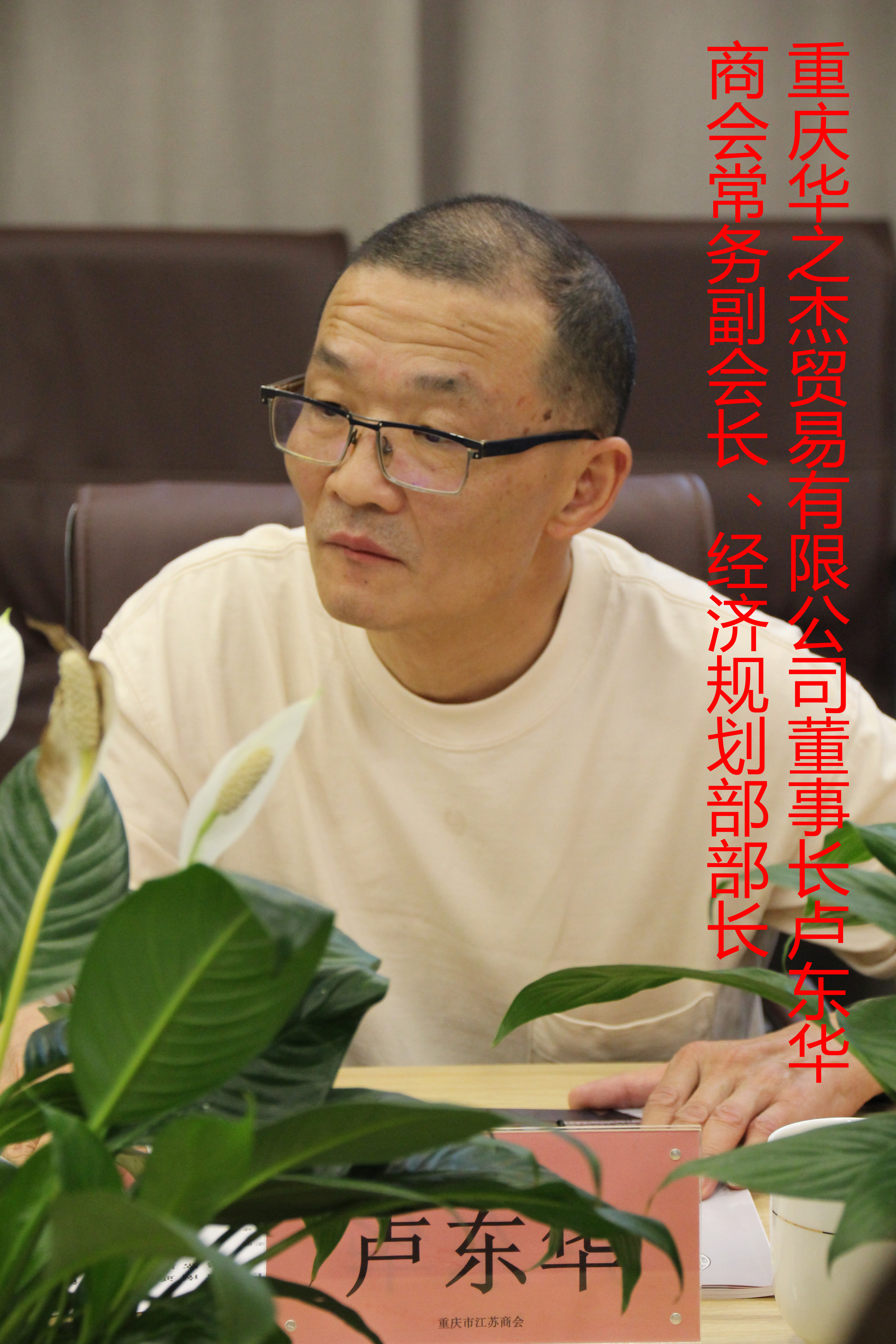 我会党委副书记、常务副会长、盐城分会会长、重庆首科实业有限公司董事长李桂云,常务副会长、经济规划部部长、重庆华之杰贸易有限公司董事长卢东华,商会党委纪检委员、常务副会长、重庆欣之弘机电设备有限公司总经理沈建辉,我会副会长、重庆丰东金属表面处理有限公司总经理陈晓龙,南光控股(深圳)有限公司副总经理赵海斌,商会党委组织委员、重庆市江苏商会秘书长沈圣林,接待了考察团一行并参加座谈会。