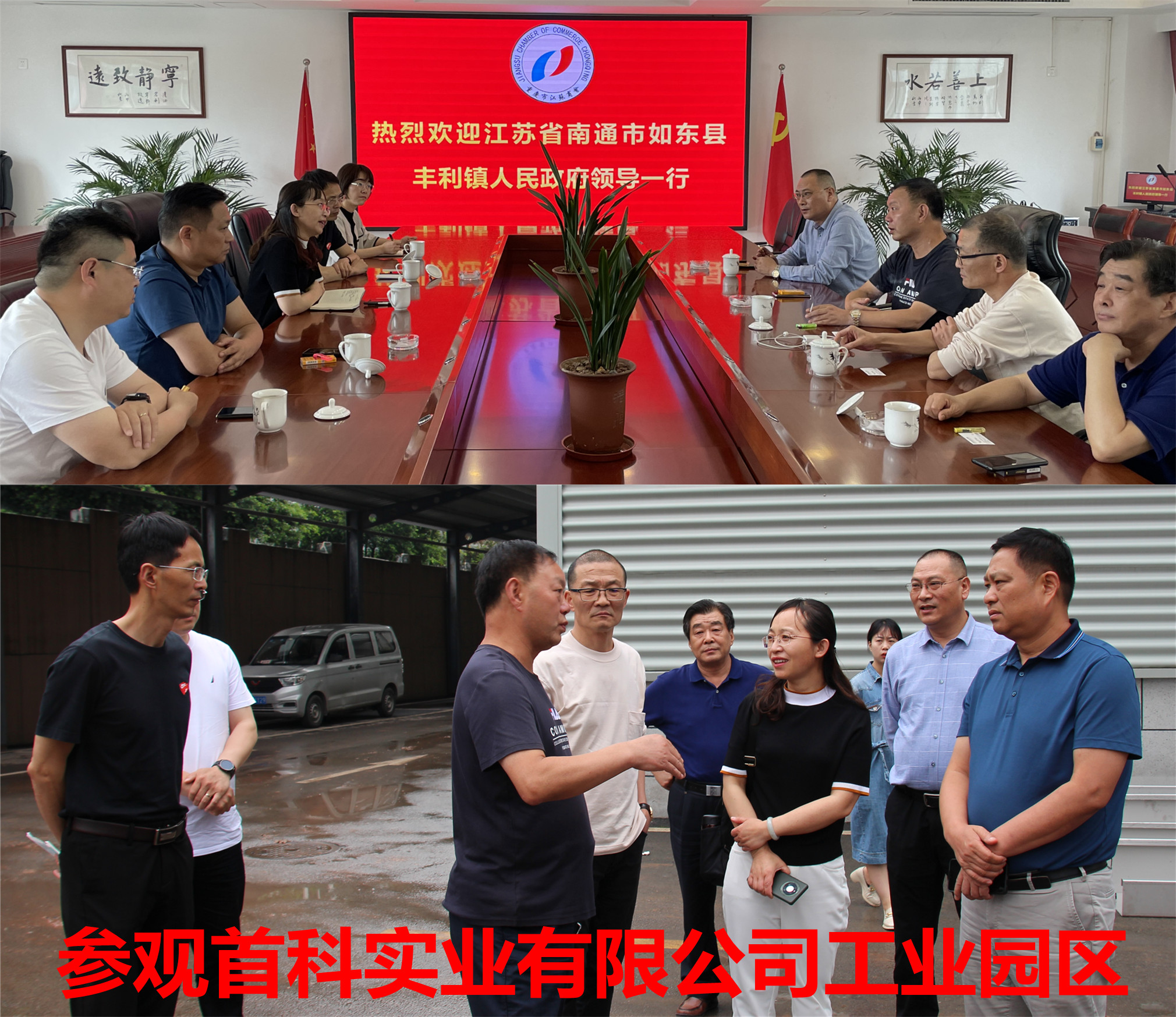 5月26日,江苏省南通市丰利镇镇长骆宏丽,丰利镇党委副书记耿建,丰利镇统战部长邢春燕,人武部长应舒舒一行莅临我会常务副会长、副会长单位参观指导工作。