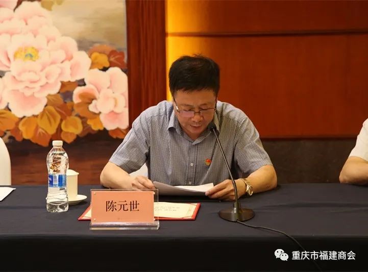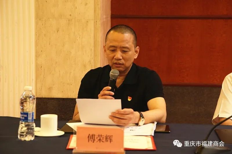 党委副书记郑立贤宣读了中共重庆市福建商会委员会《关于表彰优秀共产党员、优秀党务工作者、优秀党建之友的决定》。陈元世、林辅利、何光智、潘家兴、邓鹏飞、康恋六名党员被评为优秀共产党员;党委书记傅荣辉荣获优秀党务工作者表彰;商会会长黄祖仕被授予党建之友称号。