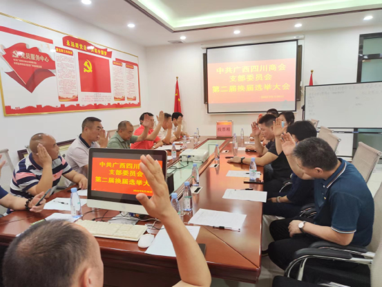中共广西四川商会支部委员会第二届换届选举大会圆满成功!我支部将以此次换届为新起点,开启新的征程,取得新的成就!