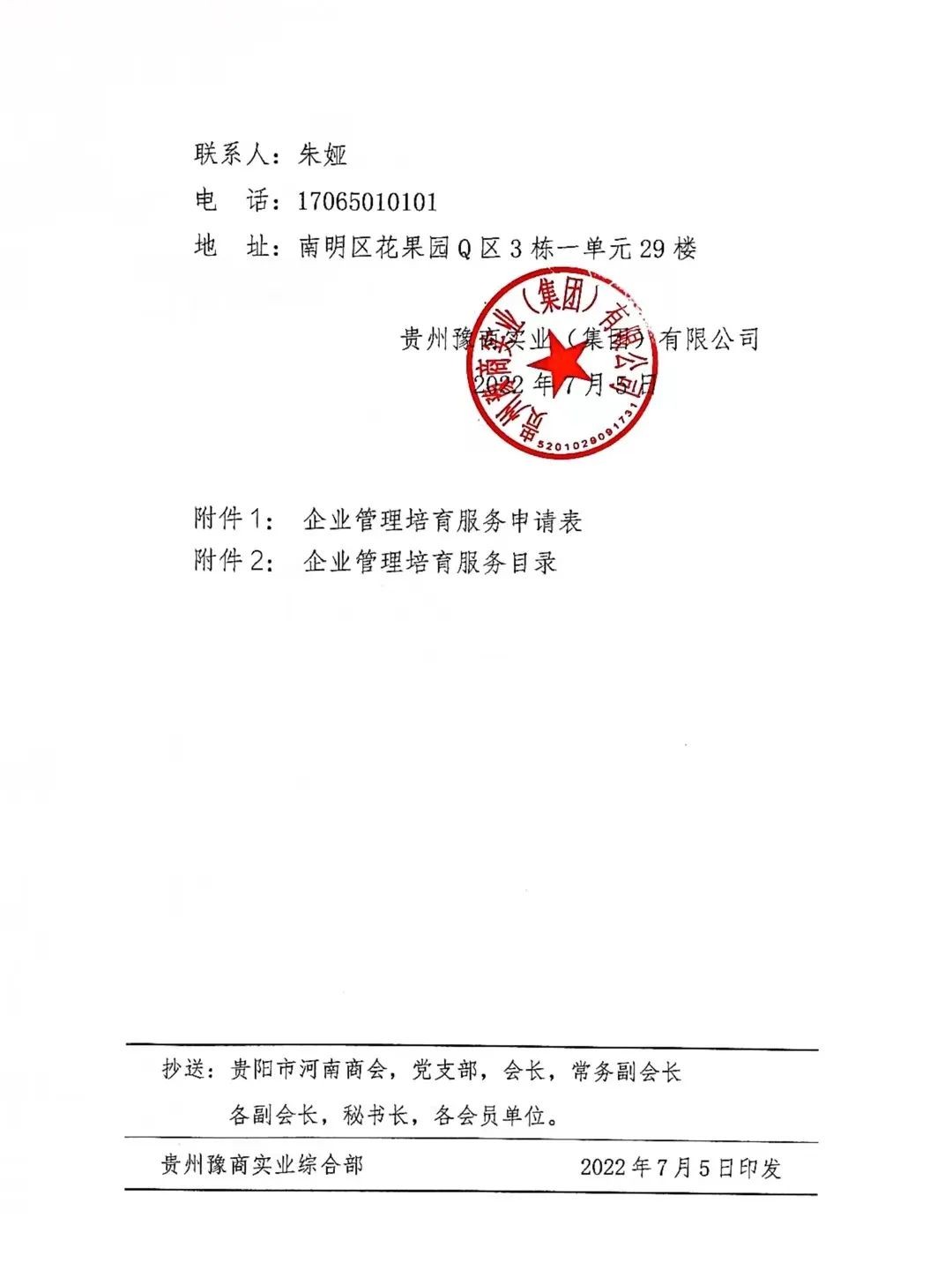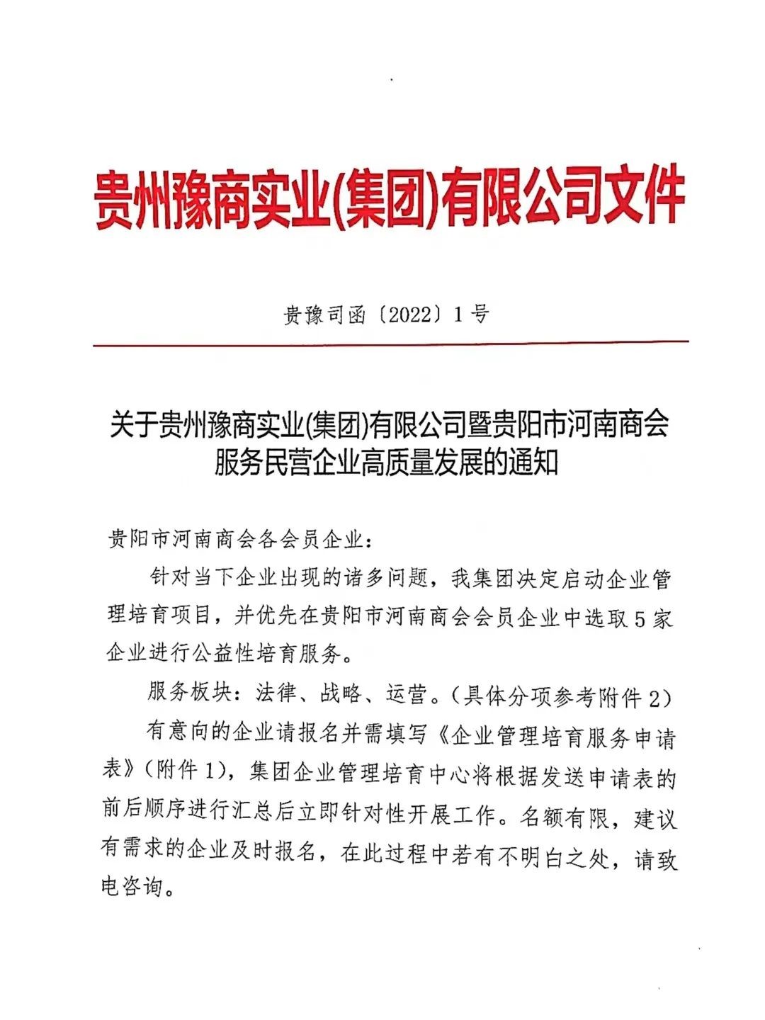 关于贵州豫商实业(集团)有限公司暨贵阳市河南商会服务民营企业高质量发展的通知
