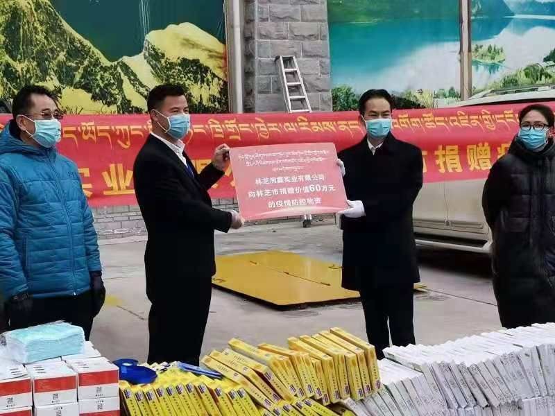 四川省企业品牌创新促进会理事单位林芝市润鑫集团先后向林芝市公安局,波密县公安局等抗疫一线送去消毒液,测温仪,护目镜,口罩,酒精等和现金计110万元。