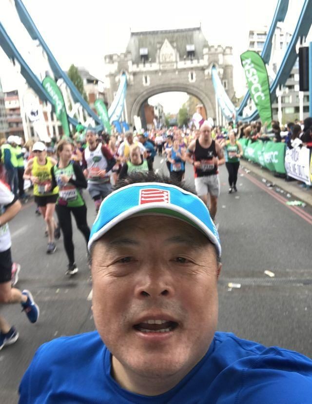 跑完波士顿,紧接着飞往到伦敦,在参观了爱丁堡、剑桥与牛津大学后的第5个马拉松,张观军突破了5小时。