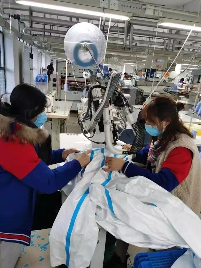 2月8日,江苏阳光服饰有限公司也开启转产模式。江苏阳光服饰有限公司总经理赵维强介绍,按照规定,阳光集团原定的返工日期是2月10日,在响应疫情防护物资需求后,企业果断决定拿出三条生产线,近八分之一的产能,实施技术改造,快速形成针对本次疫情的防护服有效产能。国际市场对防护服需求激增,压胶机货源紧俏,公司相关部门通过成熟的采购渠道“抢”到了10台,计划每天生产2000件一般防护服,一切顺利的话月产量能达到60000件。