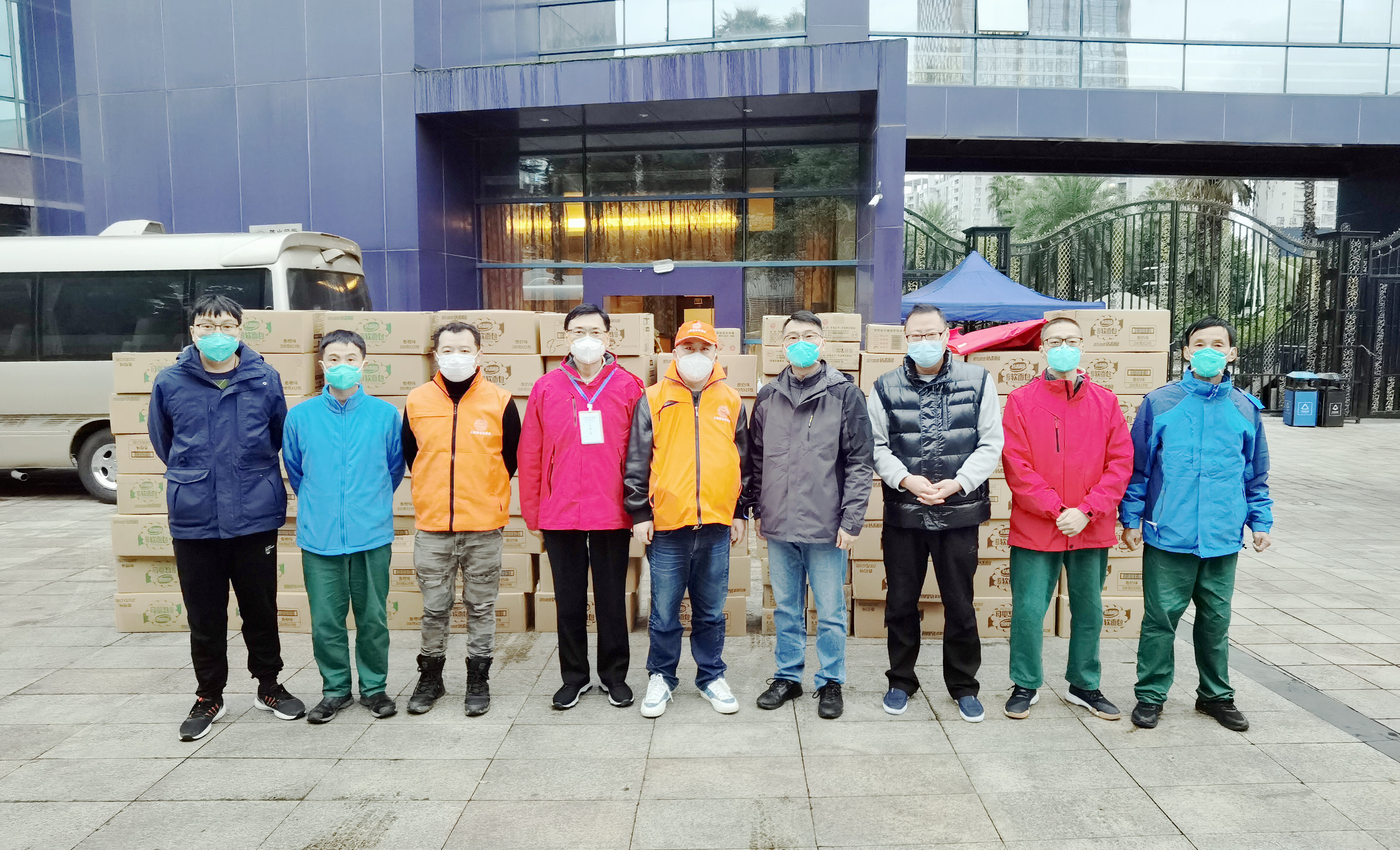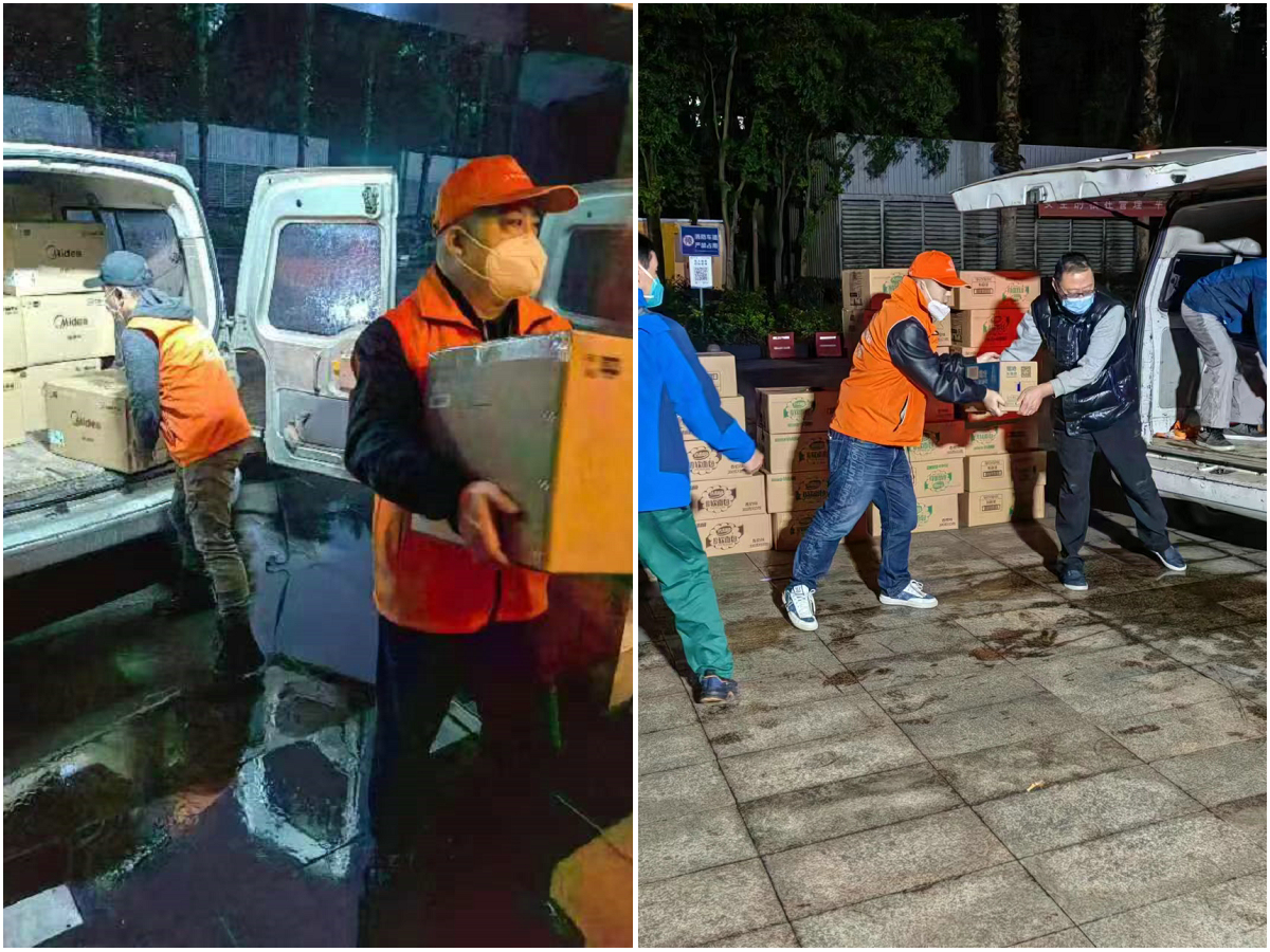 上海援渝医疗队抵达重庆后,在我会党委书记、会长韦根的统筹安排下,商会秘书长姚庆伟、副会长沈时清、会员企业家郑华主动联系上海援渝医疗队,关心问候队员情况,了解医疗队物资需求。会长韦根、监事长王维勇、执行会长沈仁刚等商会领导挺身而出,心念家乡,奉献担当,迅速组织筹募资金。在全城封控、交通管控的情况下,短短两天,商会四处联系采齐所需物资。11月29日至12月1日,由于商会主要领导封控居家,委派副会长沈时清、会员企业家易辉组成志愿队代表重庆市上海商会前往天来大酒店慰问上海援渝医疗队。志愿队冒着寒风细雨,分两批向上海援渝医疗队送去了价值12万多元的35台微波炉、520份点心食品和保暖内衣慰问物资。商会捐赠的每一份物资都承载着在渝沪商浓浓的乡情和对家乡人满满的关怀,真诚感谢家乡医护人员不远万里,来渝共克时艰,共战疫情,奉献力量。