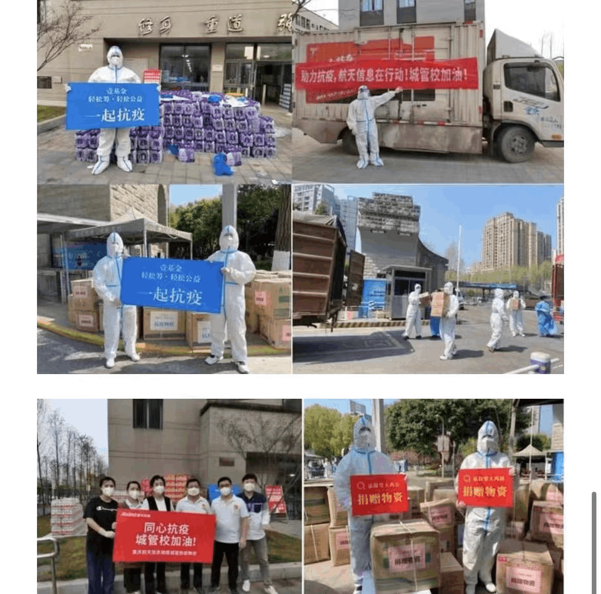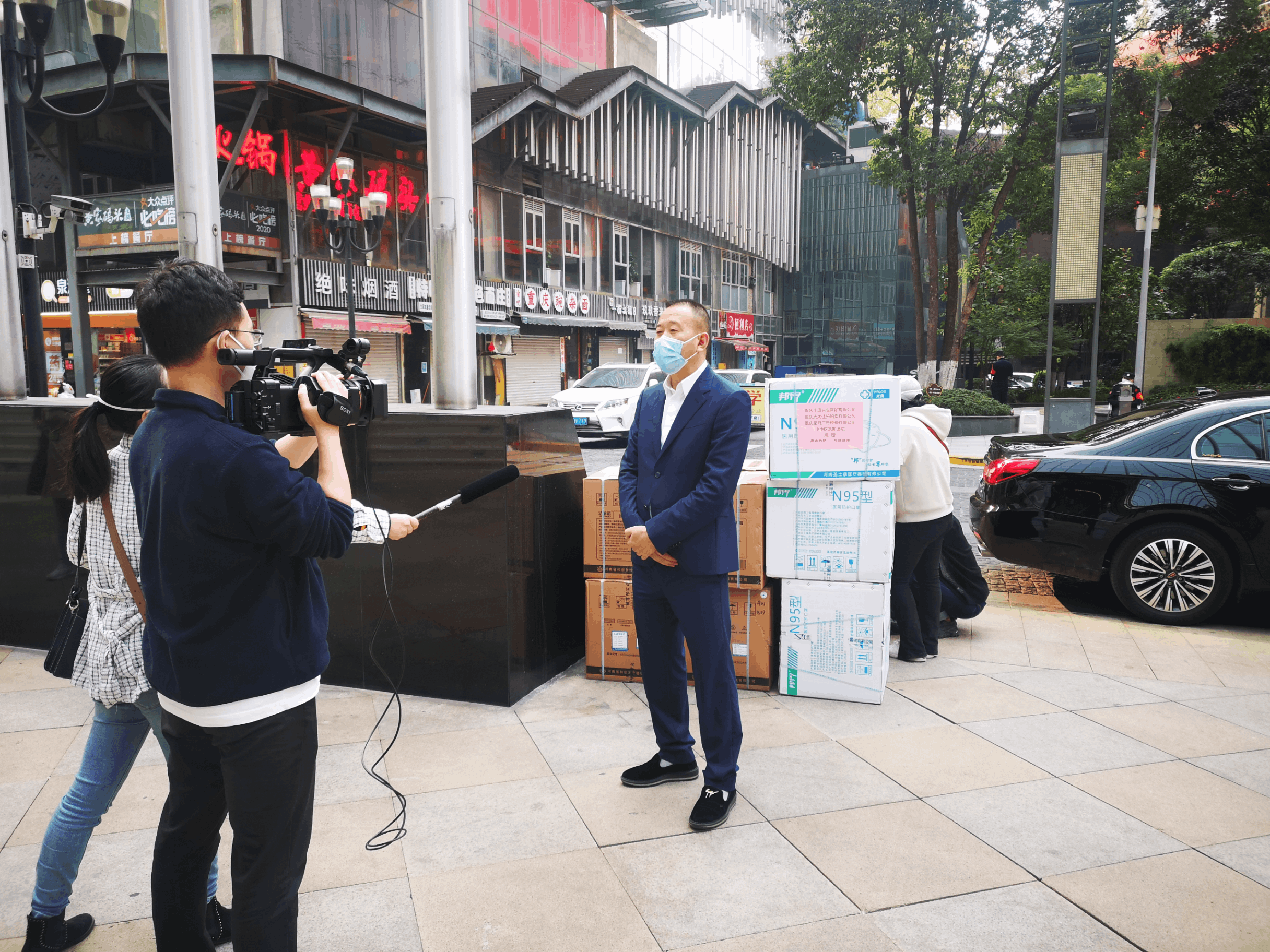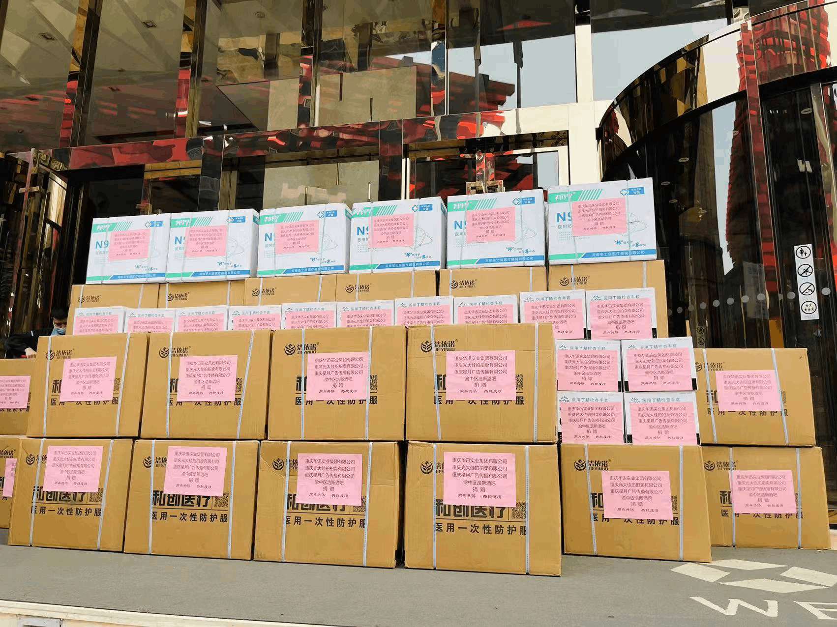 重庆市文化产业商会副会长谭建旗组织企业重庆星月广告传媒有限公司向渝中区解放碑街道、大溪沟街道、两路口街道、石柱县防护服2000套、N95口罩10000个,防护服、N95口罩、医用手套总计16万元的防疫物资。▼