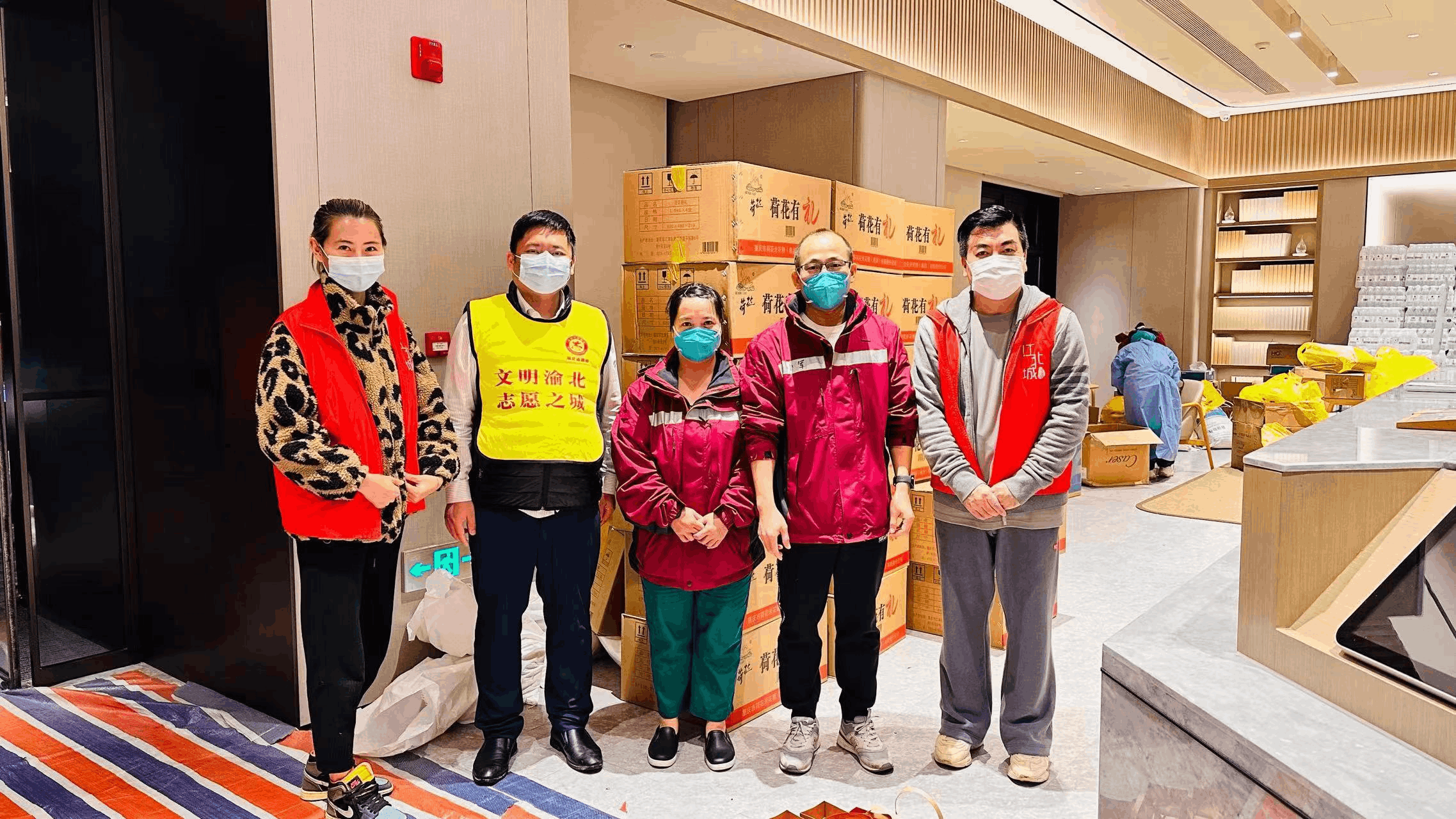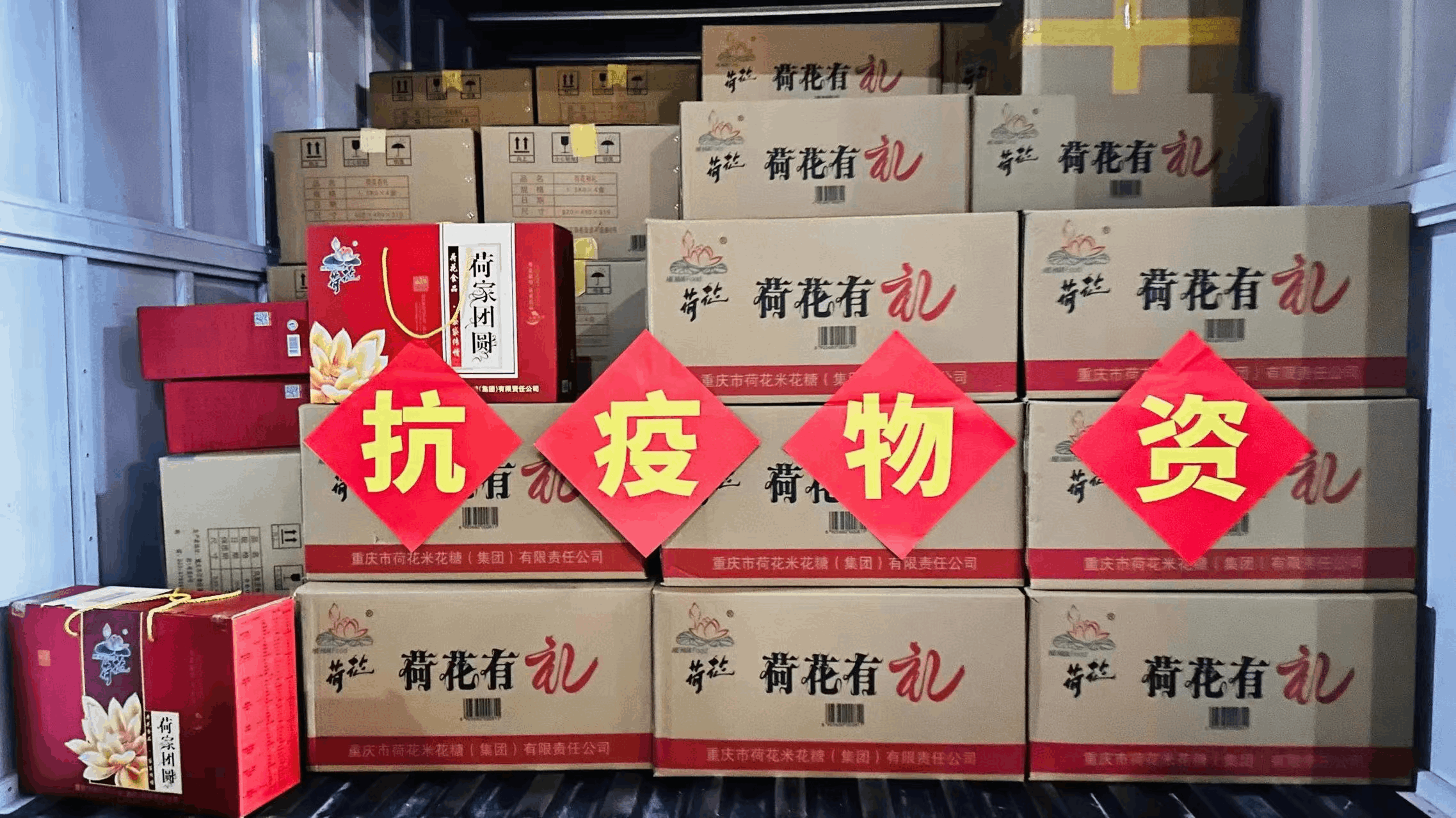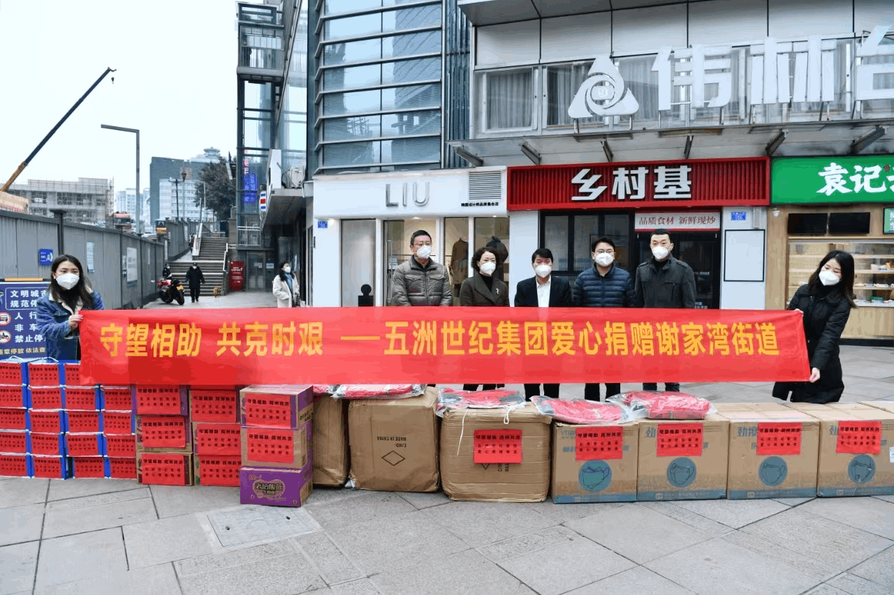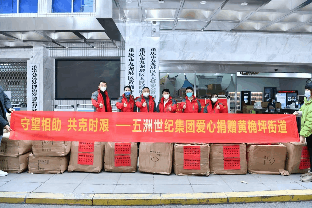 重庆市文化产业商会会长徐登权组织企业五洲世纪文化产业投资集团向九龙坡区杨家坪、石桥铺、谢家湾、黄桷坪等四个街道捐赠50万元爱心抗疫物资。▼