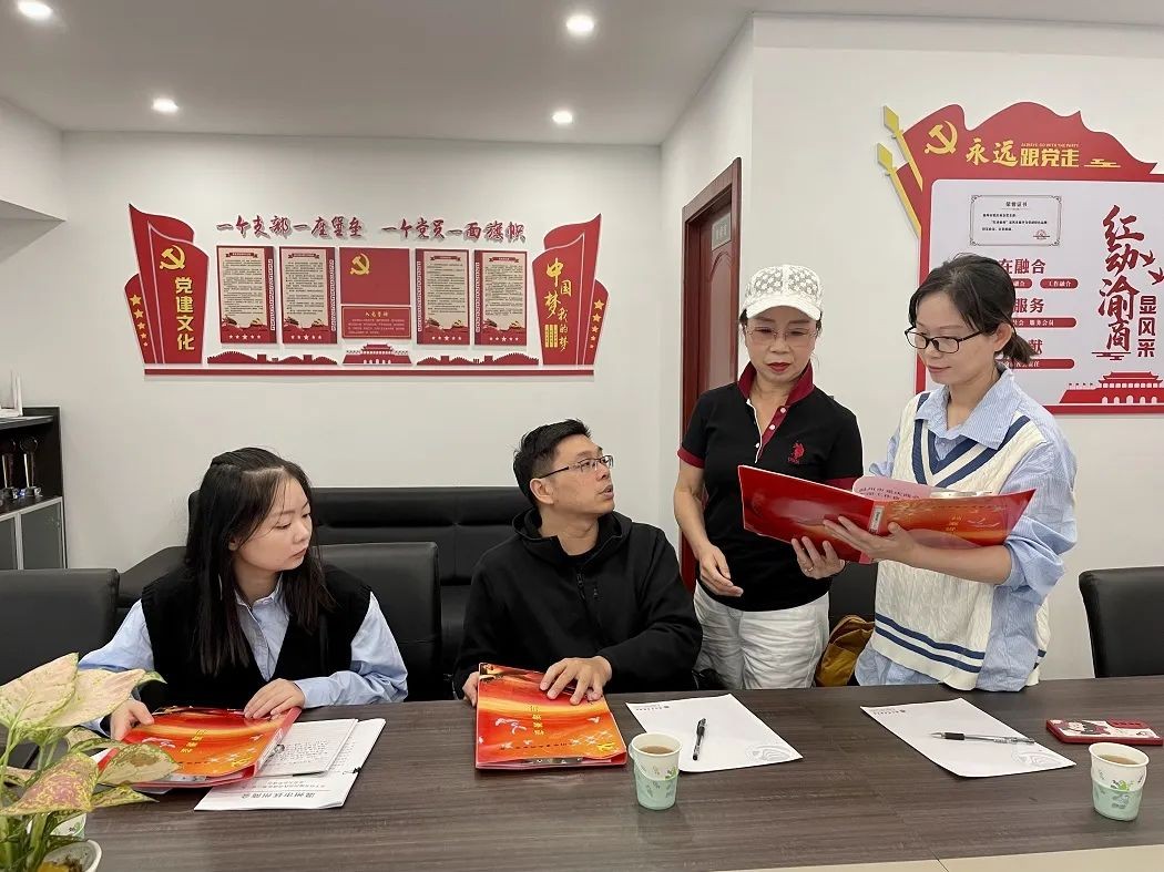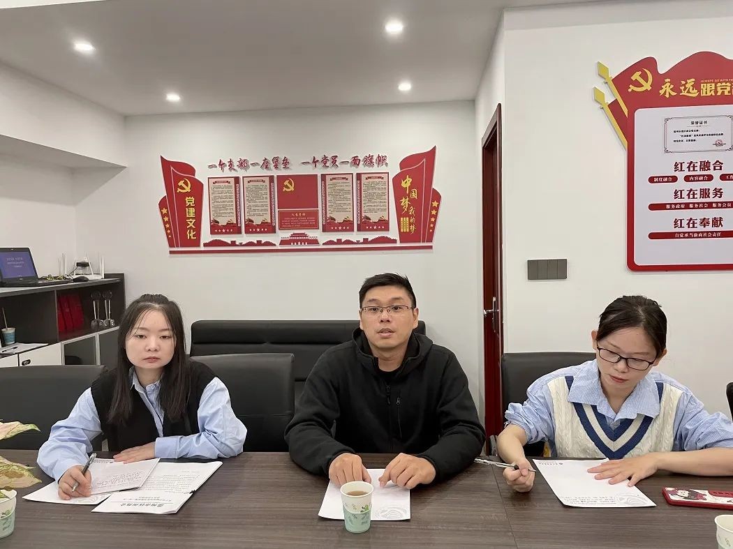 首先,商会张书记向大家讲解了商会活动展示区,创建“四好”商会的宣传展板内容;介绍了商会的组织架构、文化建设,商会的党建、会建的相关事宜。