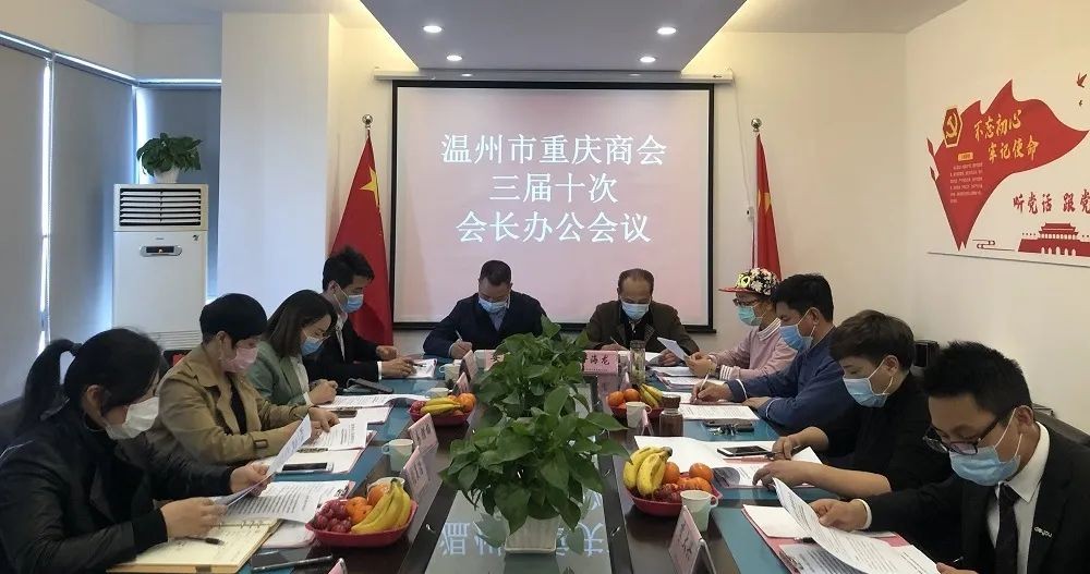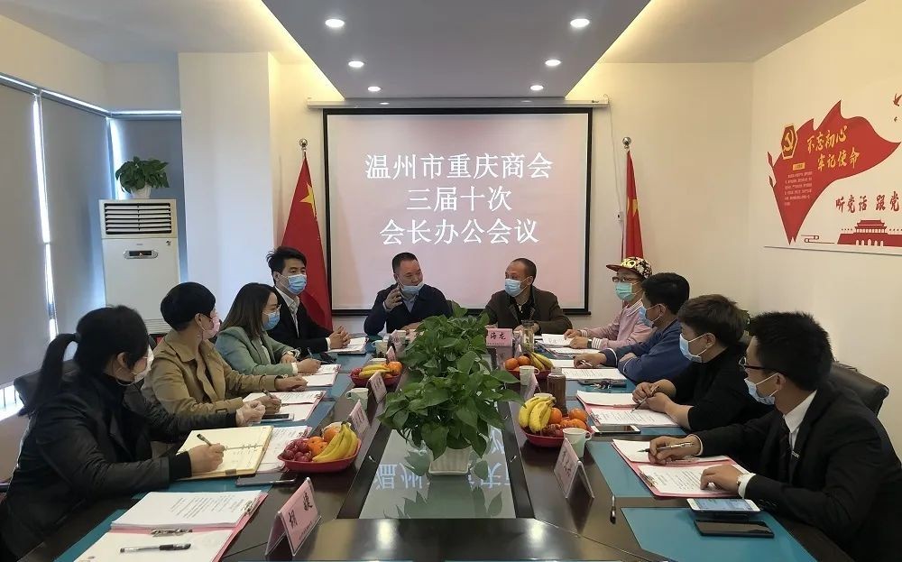 春回大地,万物复苏。我会于2020年4月26日下午2点,在商会会议室召开了今年疫情期间第一场面对面办公会议。本次会议分为两个阶段:第一阶段召开商会三届十次会长办公会议;第二阶段开展在温渝商交流分享会。会长安良均,执行会长余海龙,常务副会长胡春波,党支部书记和党员,商会部分副会长及部分在温渝商共20来人参会,会议由本月轮值会长余海龙主持。