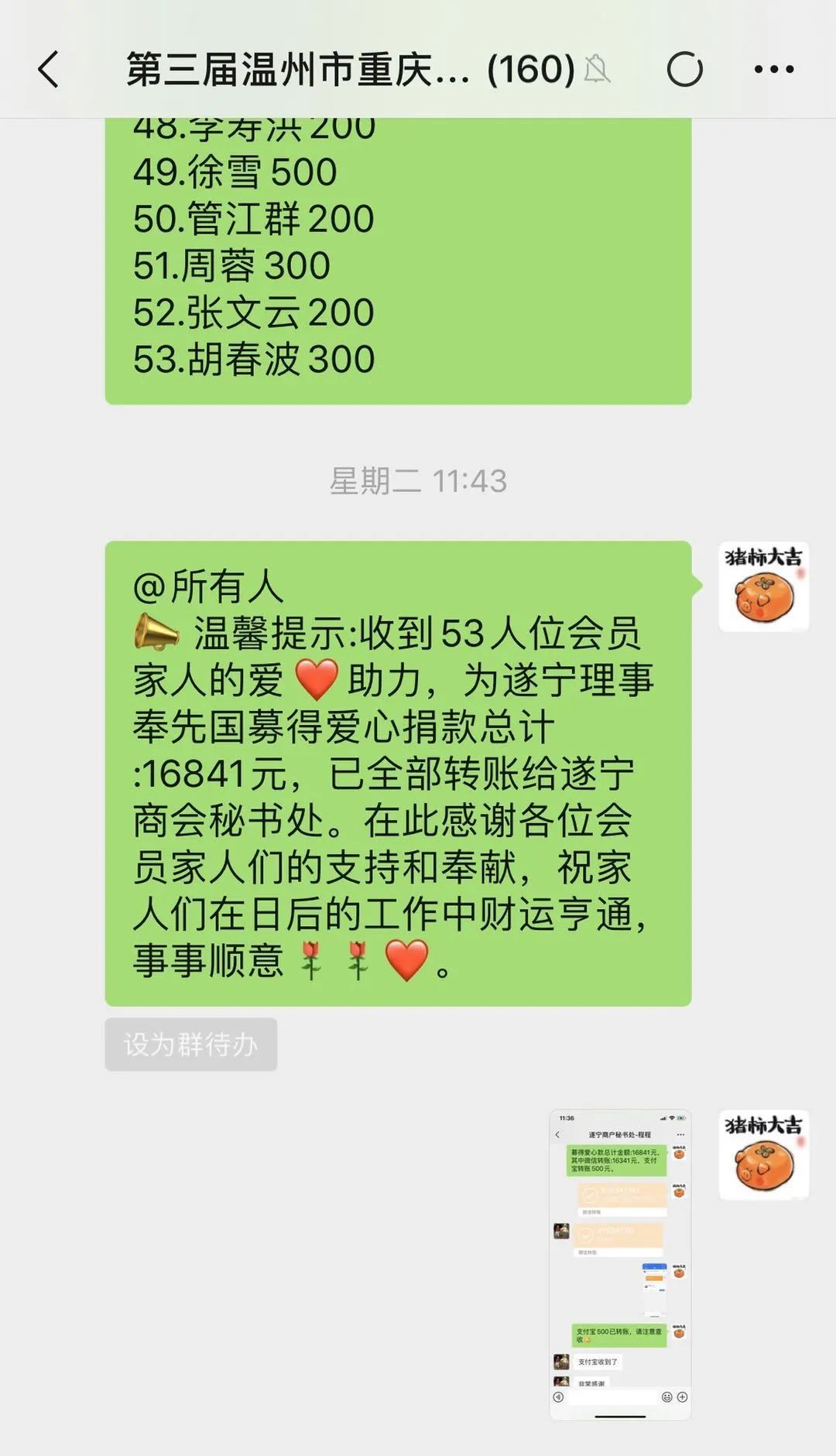 爱心点燃希望,真情传递温暖。在这特殊时期,友好商会-温州市遂宁商会理事奉先国在疫情的冲击下企业运行遭受到了巨大打击,加之自身的疾病需要高昂的费用去医治;家中爱人也有疾病在身,无劳动能力。商会秘书处得知消息后,第一时间在会员群内发出了号召,并得到了会员们的积极响应。大疫见真情,天寒暖人心,大家纷纷伸出援助之手,踊跃为老乡爱心助力,募得爱心款16841元。