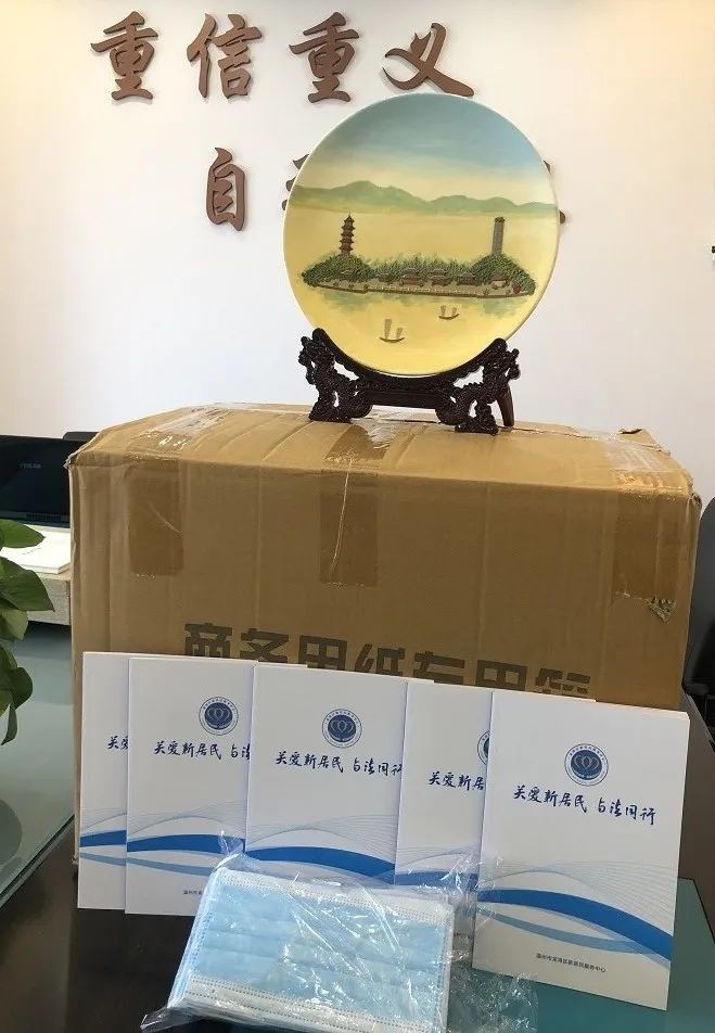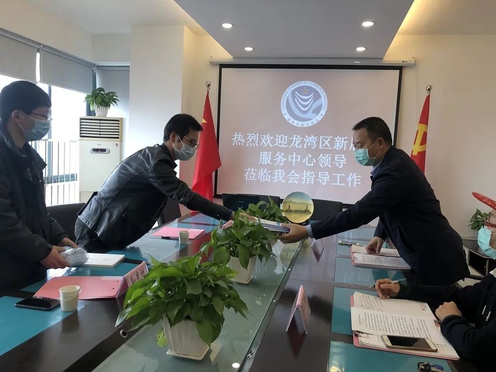 南主任听后赞扬了商会党员和全体渝商,疫情当前仍义无反顾、冲锋在前,积极参与到防疫工作中,以实际行动彰显了渝商和党员们的担当精神;接着,他表明了此次来访目的:因疫情的关系,延迟了新年拜访时间,此次来访他特意赠与了商会温州传统的工艺美术品-瓯塑:温州江心屿、普法书【关爱新居民 与法同行】和防疫物资(口罩)等,感谢渝商对温州这片热土的热爱和用心维护。紧接着,他详细地向在座人员介绍了新居民服务中心年度的重点工作:“春送岗位、夏送清凉、金秋送学、冬送温暖”日常工作开展的事例;他希望能跟商会更进一步对接,将工作开展到深处,落实到实处。