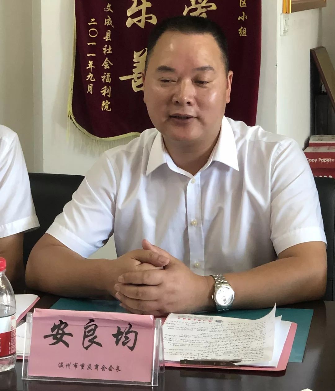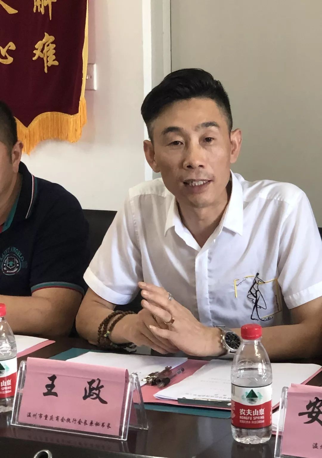 双方在简单的寒暄后,我会执行会长兼秘书长王政简单地介绍了此次参会的商会常务班子人员在温经商的情况。