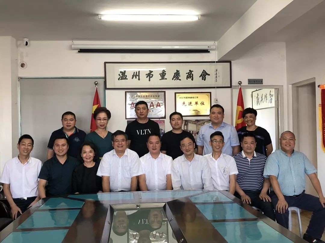 7月27日-29日,全国工商联组织工作会议在温召开。重庆市工商联领导、全国工商联会员部领导借参加全国工商联组织工作会议之际,于2019年7月29日下午,重庆市委统战部副部长、市工商联党组书记向远春,全国工商联会员部副部长刘建,重庆市工商联党组副书记、副主席张莉,重庆市工商联会员部部长余世军,全国工商联会员部组织处干部崔玉南,重庆市九龙坡区杨家坪街道商会会长、重庆上创实业集团董事长程自文一行莅临我会考察指导。工商联领导和嘉宾抵达我会驻地小区时,受到了我会会长安良均,执行会长兼秘书长王政,执行会长严庆东,常务副会长邓永明、冉小权、雷利民、王新,副会长胡红梅,党支部书记张莉珍及我会办公文员的热情接待。