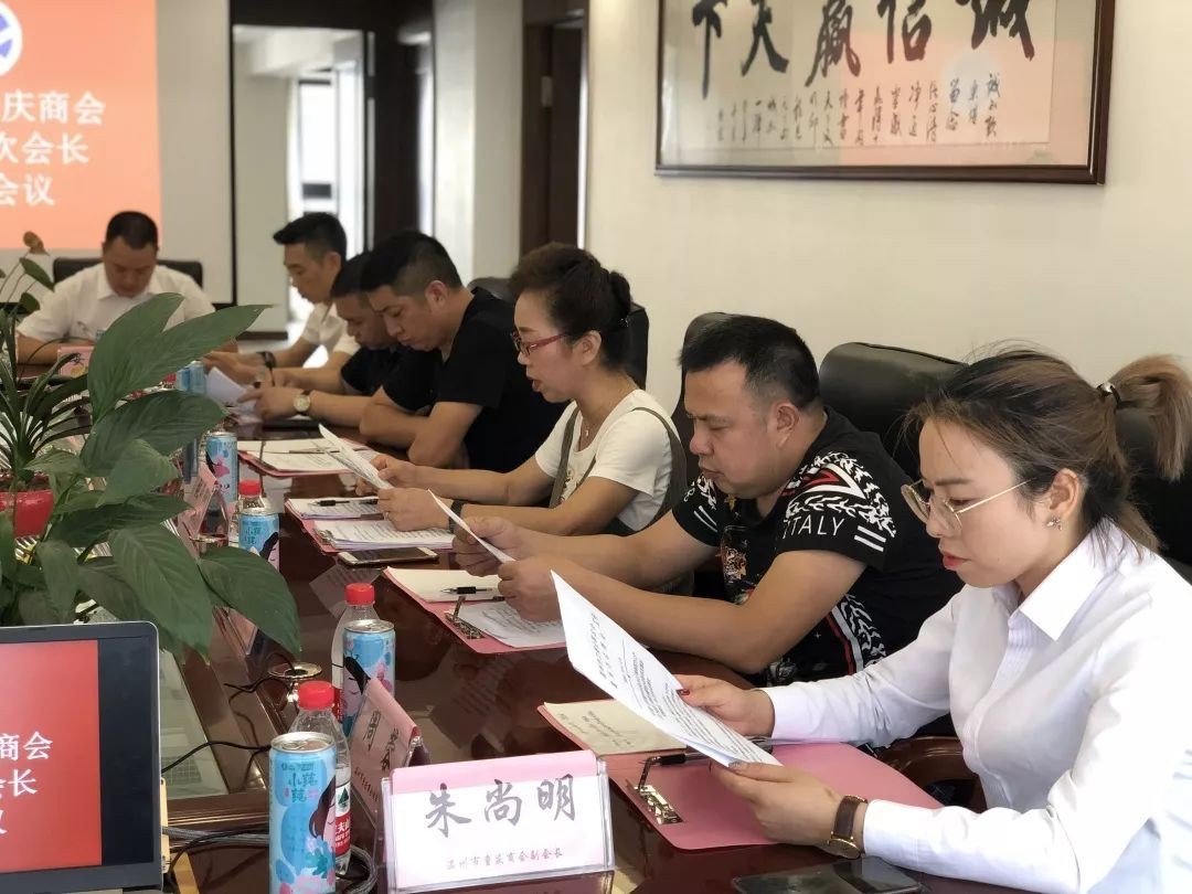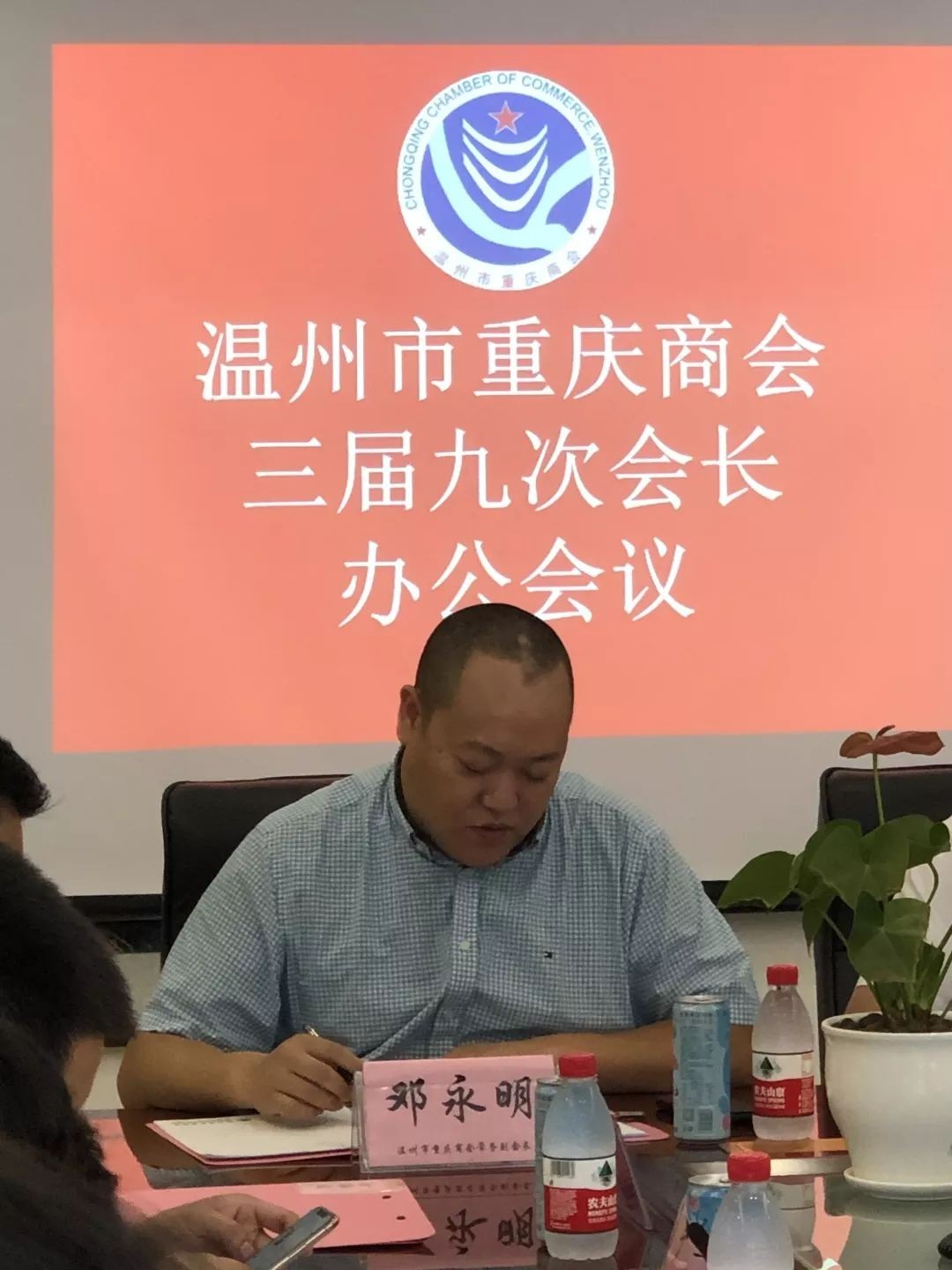 会议的第二议程:张书记通报了商会今年上半年的主要工作情况: 今年1-7月上旬,商会举行了各类党日会议、主题党日活动、会长办公会议、理事会议、会员大会、走访会员企业进行“进访助”活动、各片区小组活动、兄弟商会交流、温渝两地有关政府机关单位走访指导交流、会员维权培训及举行社会公益活动共29次;新增新会员11位,理事2位;