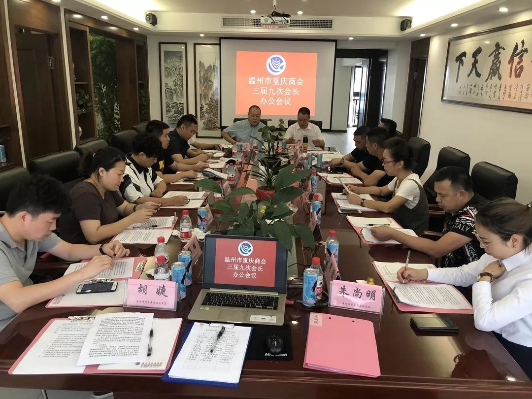 2019年7月18日下午2点,温州市重庆商会在温州澳特莱化工有限公司会议室,召开了三届九次会长办公会议。我会会长安良均,执行会长兼秘书长王政,执行会长余海龙、严庆东,常务副会长冉小权、雷利民、王新,副会长胡红梅、彭皓、张志国、吴寒冰、周蓉,党支部书记张莉珍及我会办公文员出席了本次会议。会议由常务副会长(本月轮值会长)邓永明主持,温州澳特莱化工有限公司办公人员对我会参会人员进行了热情的招待。