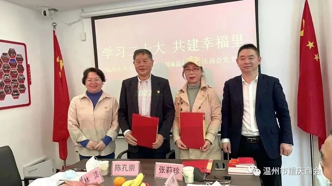 学习二十大·共建幸福里|温州市重庆商会党支部与绿园社区人才大厦党支部举行党建共联共建活动