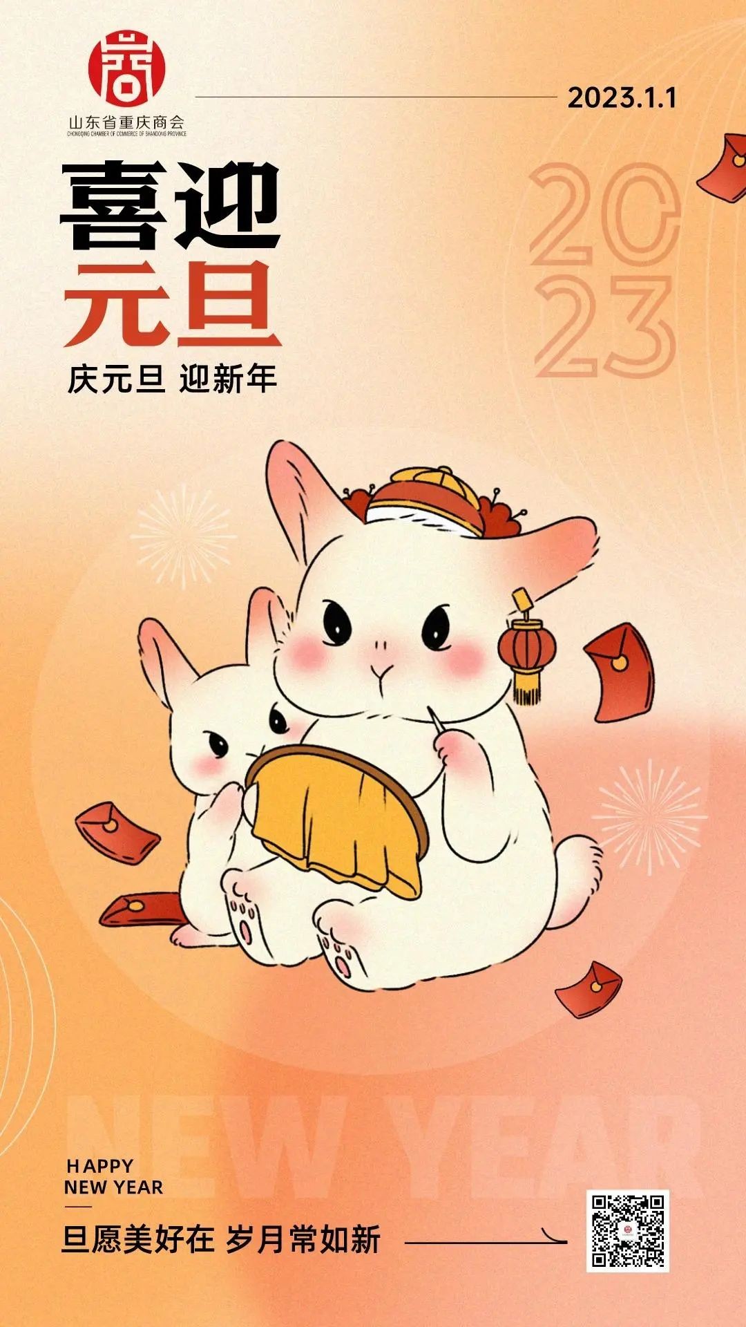 岁序更替,华章日新。值此2023年元旦来临之际,山东省重庆商会会长秦晓东携商会领导班子向全体会员、各位同乡及您们的家人致以新年元旦的祝福和衷心的问候。祝大家在新的一年里平安喜乐,万事如意,身体健康!