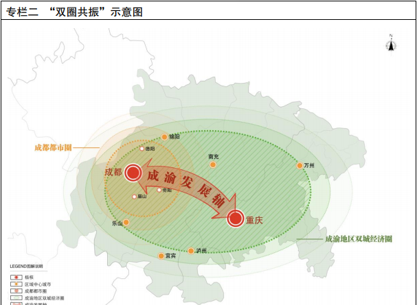 一是“在强化成渝‘双核’联动联建上实现更大突破”。这项任务又有三大重点:1.加强重庆中心城区与成都市功能衔接,2.推动重庆都市圈与成都都市圈协同互动,3.辐射带动全域发展。“双核”独大依旧是成渝地区双城经济圈的重要区情,2021年重庆、成都分别实现 2.79 万亿元、1.99 万亿元的生产总值,位列全国第 5 位、第 7 位,两地合计GDP 占西部地区的19.9%。