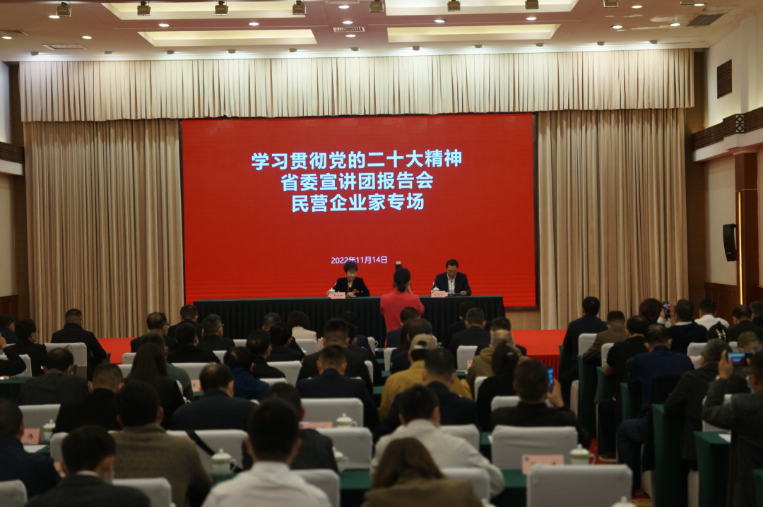 2022年11月14日,商会会长吕状文参加学习贯彻党的二十大精神省委宣讲团报告会民营企业家专场。