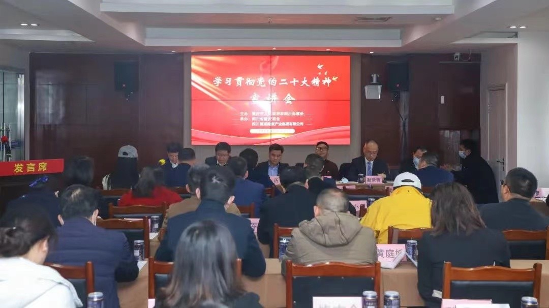 2022年12月5日,重庆市人民政府驻四川办事处李历主任一行赴商会宣讲党的二十大精神,并在商会会长单位星瑞集团开展“党的二十大精神进商会进企业”宣讲活动。