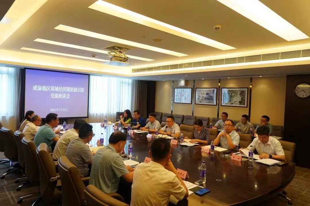 2022年7月12日,由重庆市人民政府驻四川办事处牵头组织的成渝地区双城经济圈招商引资交流座谈会在成都新华宾馆举行。商会会长吕状文携秘书长高玄波、副秘书长邓军军应邀参加会议。