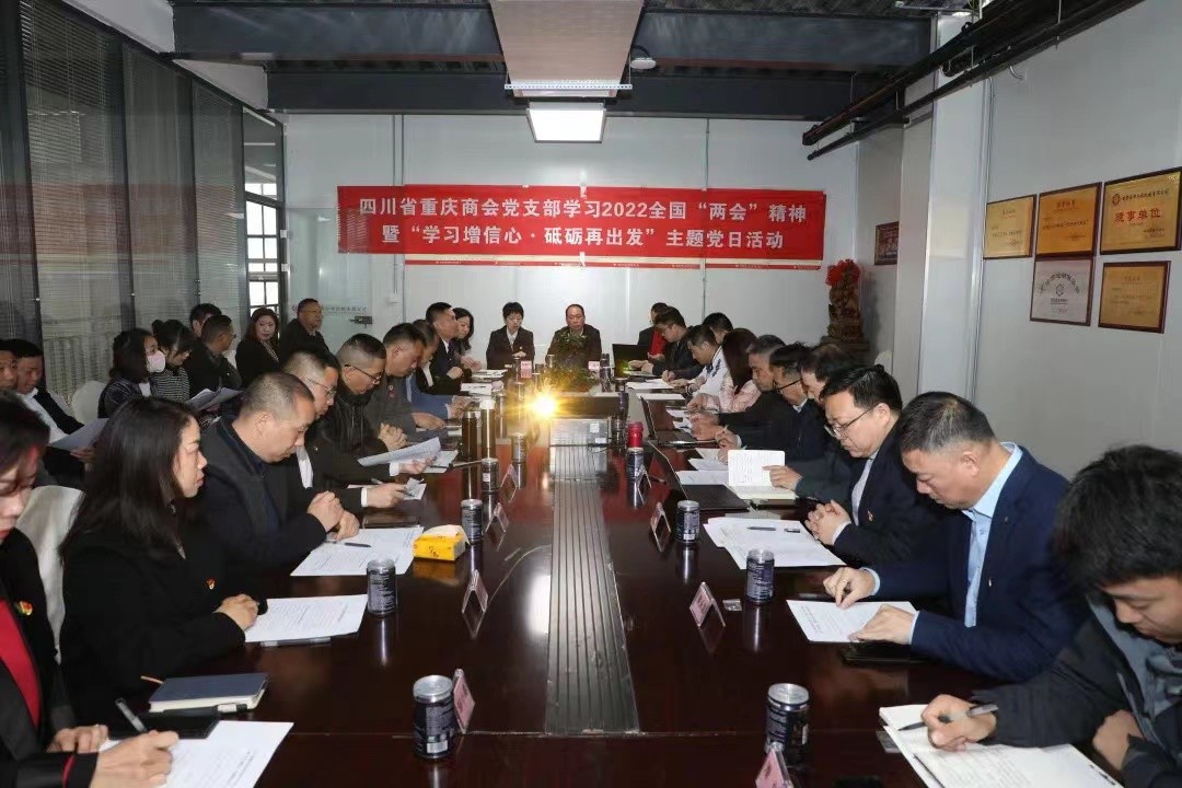 2022年4月1日,商会党支部在理事单位、成都国峰工程机械有限公司,举行学习全国“两会”精神暨“学习增信心·砥砺再出发”主题党日活动,邀请重庆市人民政府驻四川办事处副主任龚平、经济合作处负责人易光伟作主题分享。