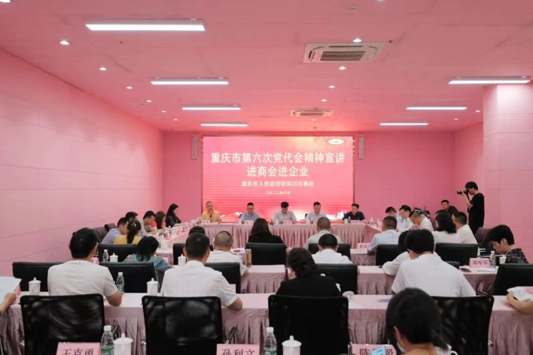 2022年6月8日,重庆市人民政府驻四川办事处李历主任一行赴商会常务副会长单位、四川荣乐投资有限公司开展“重庆市第六次党代会精神宣讲进商会进企业”活动。