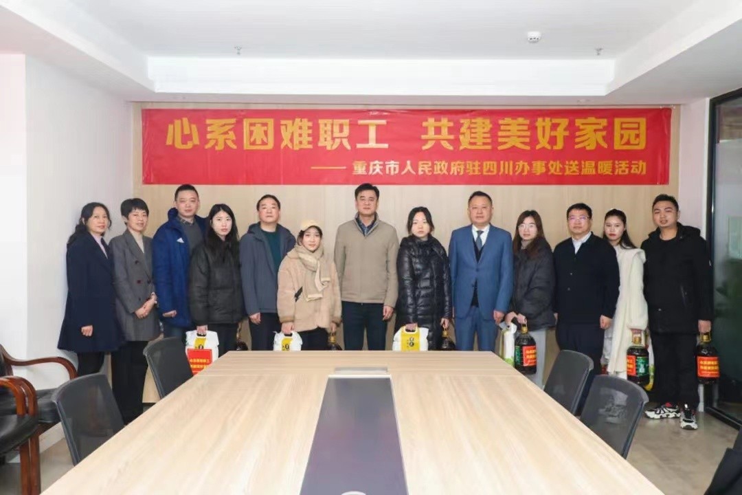 2022年1月6日,重庆市人民政府驻四川办事处主任李历一行赴商会开展“为会员企业一线困难职工送温暖”慰问活动。