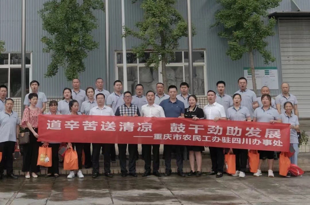 2022年6月22日,重庆市人民政府驻四川办事处副主任龚平一行赴商会常务副会长单位成都天骄家具有限公司,慰问公司在川渝籍一线务工人员代表。
