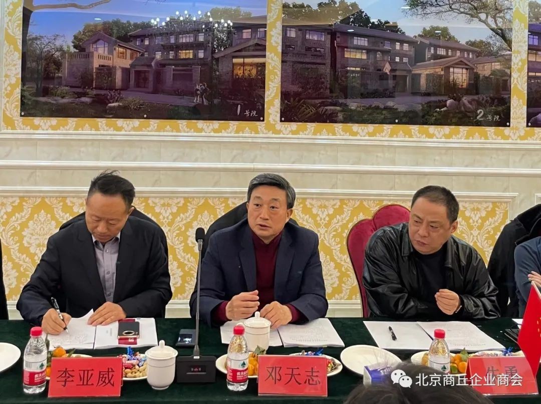 邓天志会长首先代表商会对段云泉主任莅京履新表示祝贺和欢迎,对驻京办长期以来给予的关心支持表示感谢。邓会长简要介绍了商会十二年的发展历程,讲到自己的家乡情结,作为商丘市政府特聘的“商丘招商大使”,支持家乡招商引资、招才引智责无旁贷,愿意为热爱的故土贡献力量。邓会长结合当前国家经济形势,分析了医药、教育、物流、高端制造等产业机会;建议招商引资要进行合理规划统筹管理,驻京办做好分工配合,推荐项目重点跟踪服务;持续优化营商环境,招得来,留得住,吸引更多优秀企业走进商丘、投资商丘。