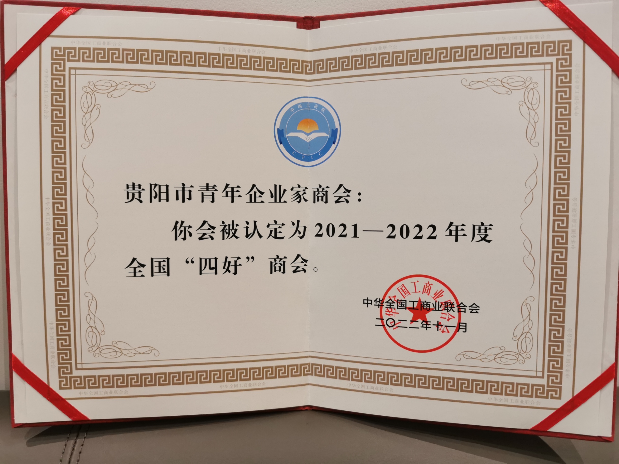 贵阳市青年企业家商会荣获2021-2022年度全国“四好”商会。