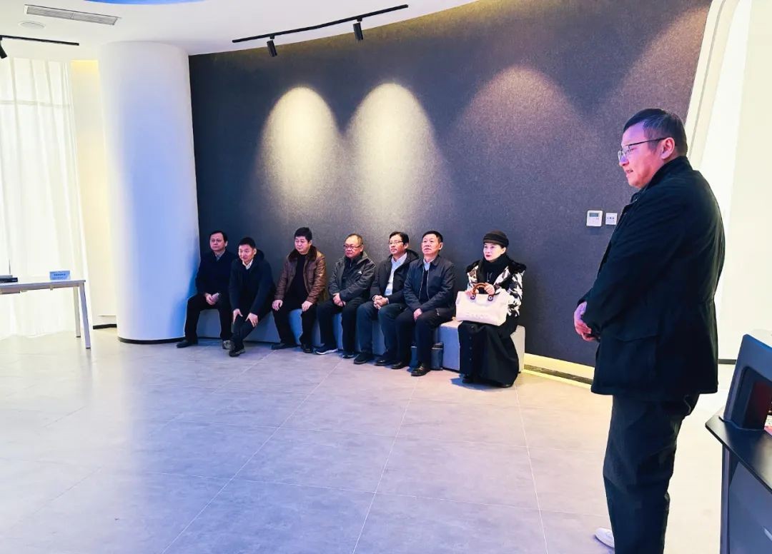 走访组一行观看永修北京商会会长徐涛介绍公司情况PPT