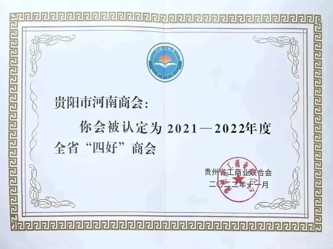 当天会议还向荣获全省“四好”商会的商会颁发荣誉证书。贵阳市河南商会被贵州省工商联评选为2021-2022年度省级“四好”商会。