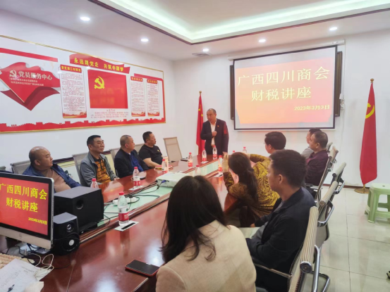 2023年3月3日上午,广西四川商会郎云燕会长组织来自北京的税务师张晓伟做客广西四川商会,为广西四川商会的企业家们做了一场生动的关于财税方面的知识讲座。