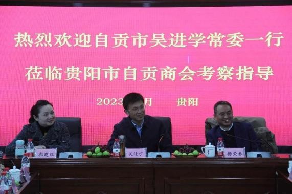 上午,吴进学一行来到位于观山湖区西南上城碧桂园和泰府 1 号楼的贵阳市四川自贡商会总部调研,在听取会长付利所作的商会发展情况汇报后,吴进学指出,习近平总书记在 2022 年中央经济工作会议上强调:各级领导干部要为民营企业解难题、办实事,构建亲清政商关系。异地自贡籍企业家在外创业成长是自贡的骄傲, 同时也是家乡人民的牵挂,我们此行的目的,就是落实总书记的指示,代表市委市政府,看望在异乡创 业发展的自贡籍企业家,关心和支持企业发展,搭建服务平台, 解决发展中的难点痛点问题,让企业家们心无旁骛创新创造、 踏踏实实办好企业。