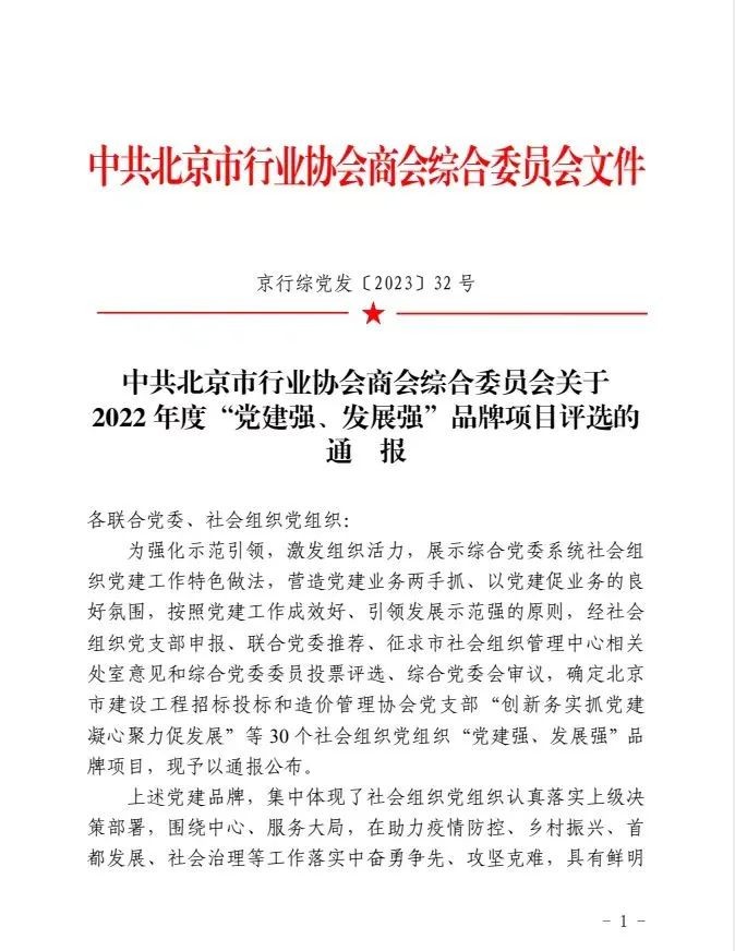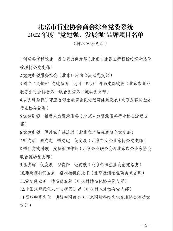 北京市行业协会商会综合委员会关于2022年度品牌项目评选通报