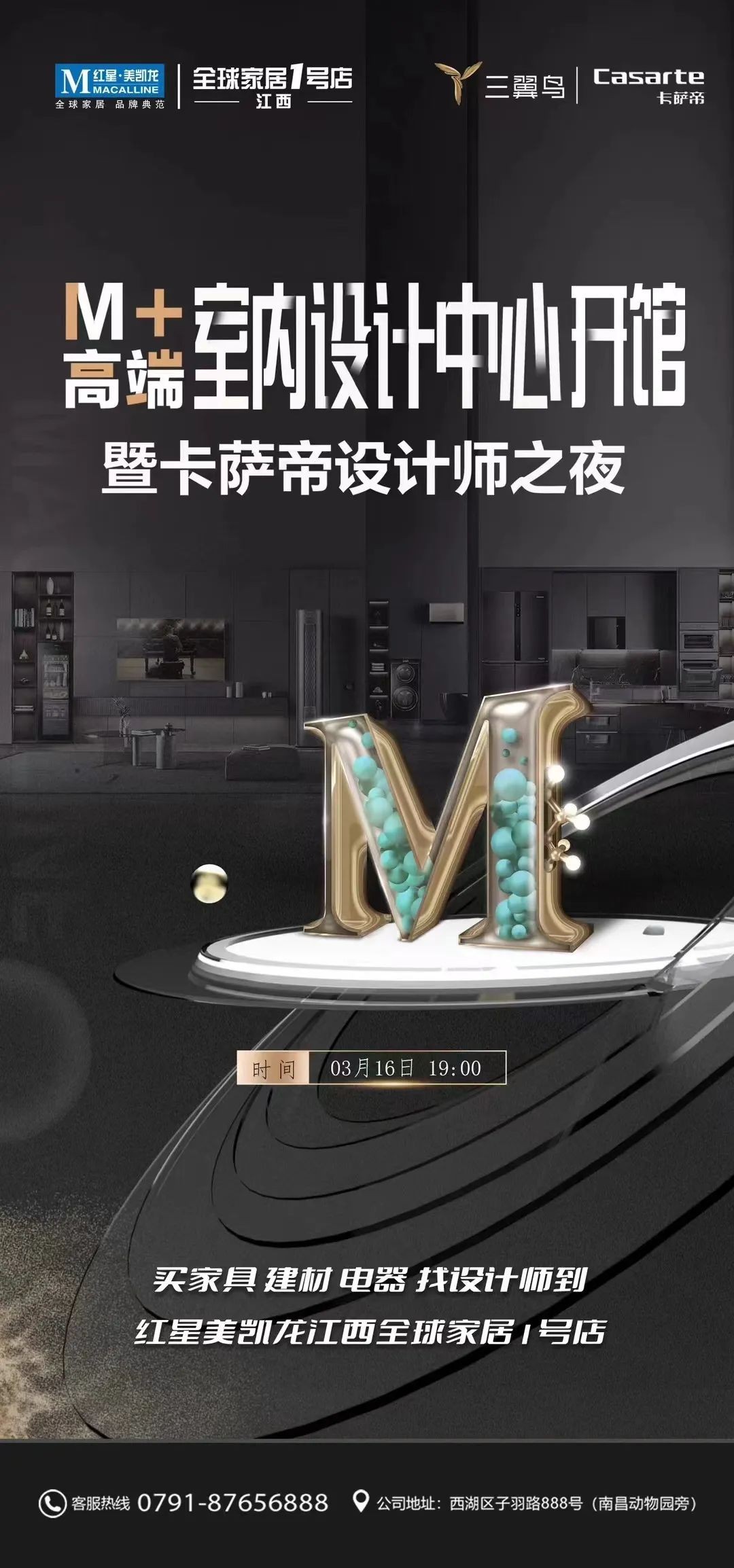 南昌三翼鸟·卡萨帝设计之夜暨M+高端室内设计馆开馆将于北京时间3月16日在红星美凯龙江西一号店举行。南昌家电、家装、家居领域专业人士齐聚,共同探讨智能家居在中国的发展应用现状,以及智装一体化场景方案对未来家装设计的升级引领意义。
