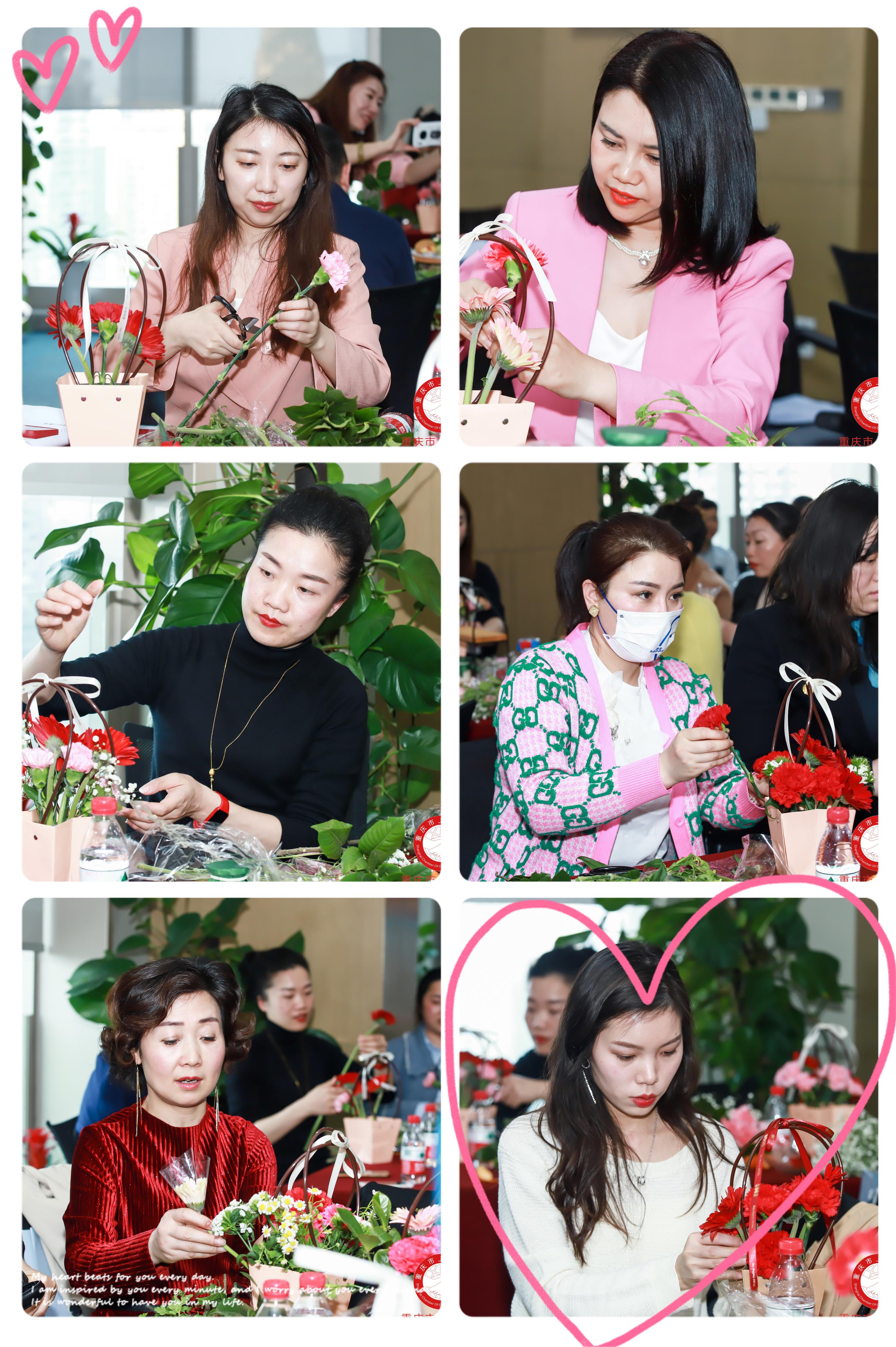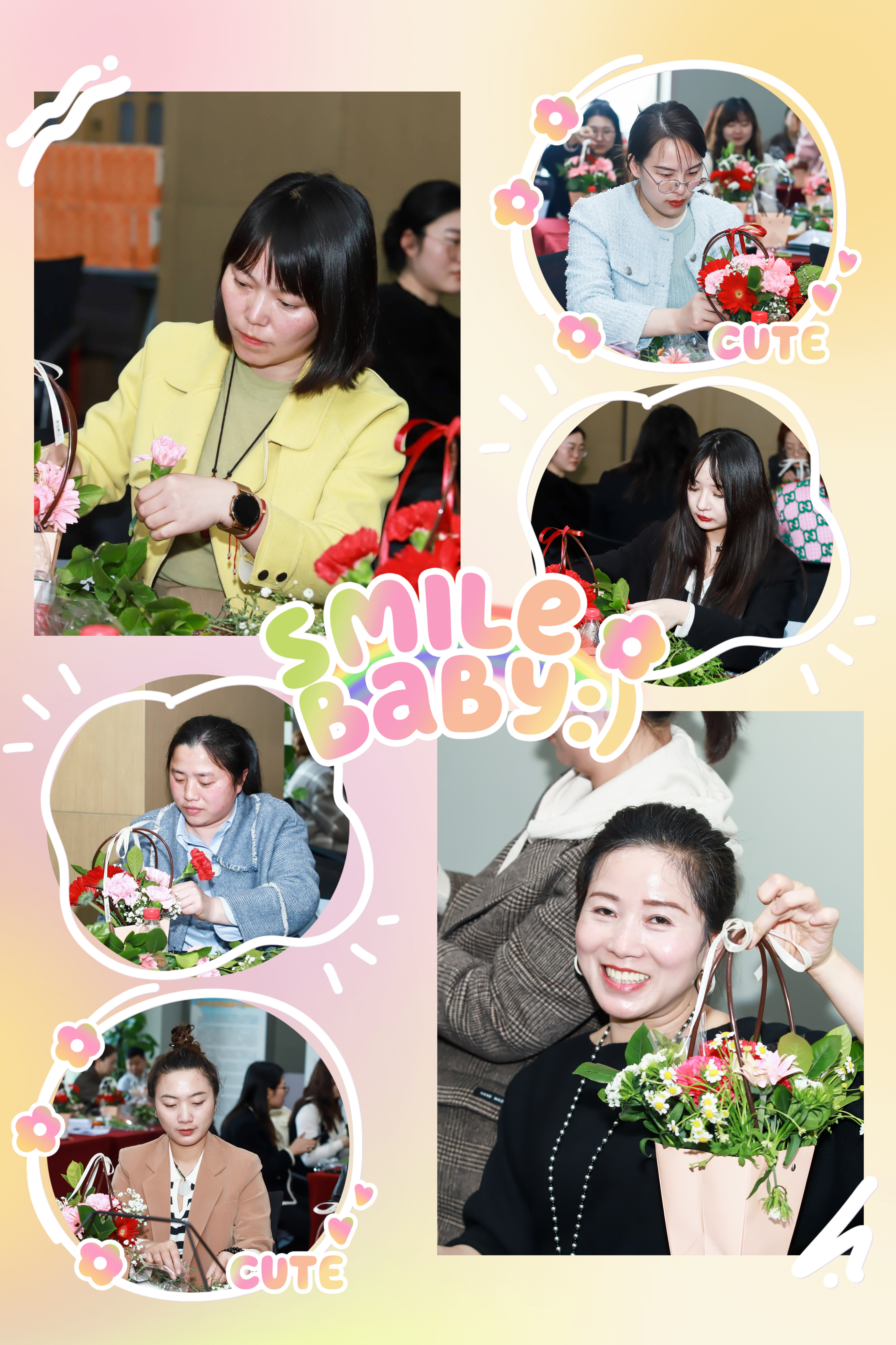 活动进入主题插花艺术交流环节,女同胞们拿起精心准备的花篮和插花工具剪刀,以及向日葵、香槟玫瑰、康乃馨、小雏菊等花材。在花艺师给大家普及了花卉的选择、颜色的搭配,以及如何让花卉错落有致等方面的知识后,女同胞们各显神通,精巧搭配,顺利完成了各自的插花作品,大家手捧鲜花,留下了自己的美丽瞬间,露出了开心的笑容。