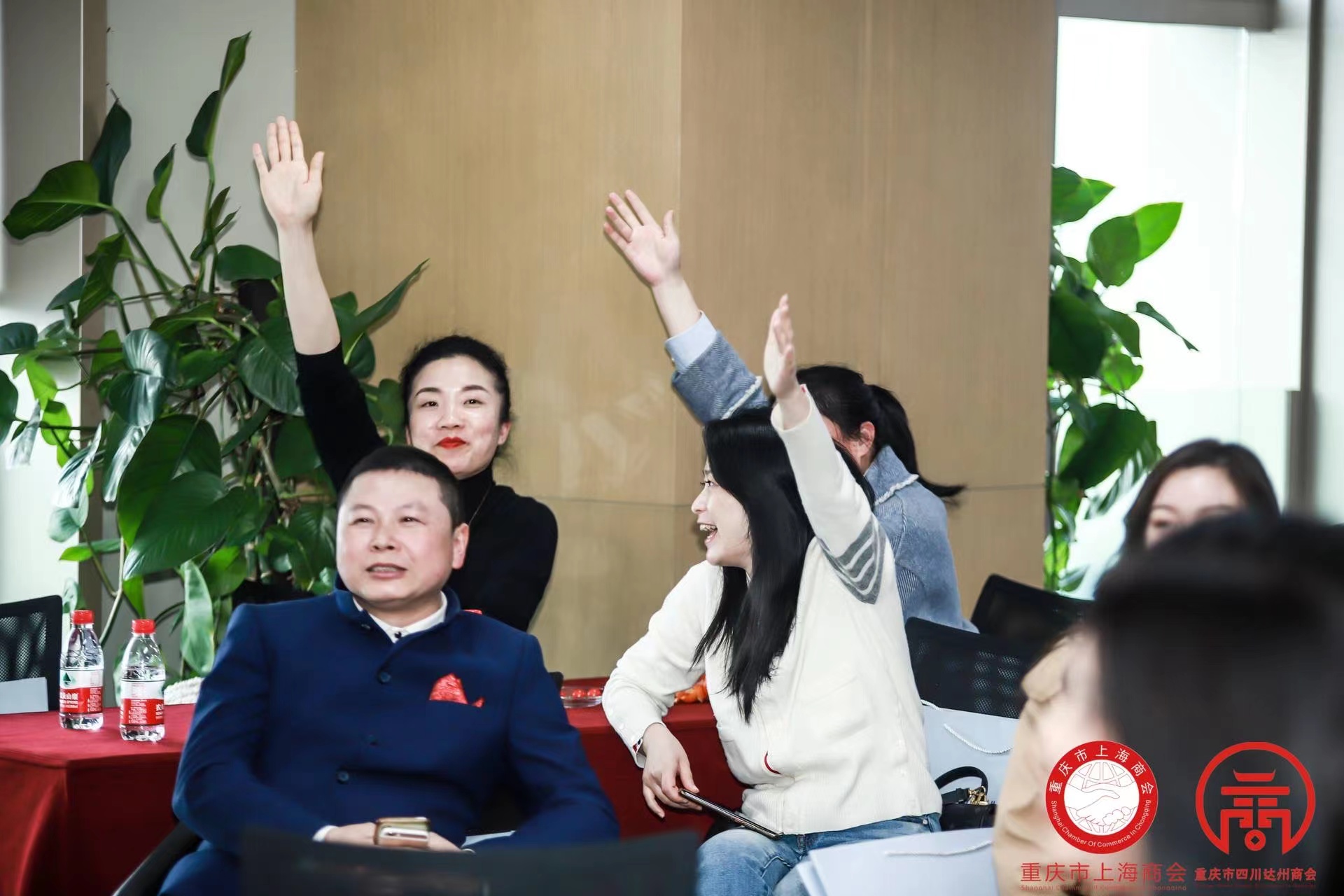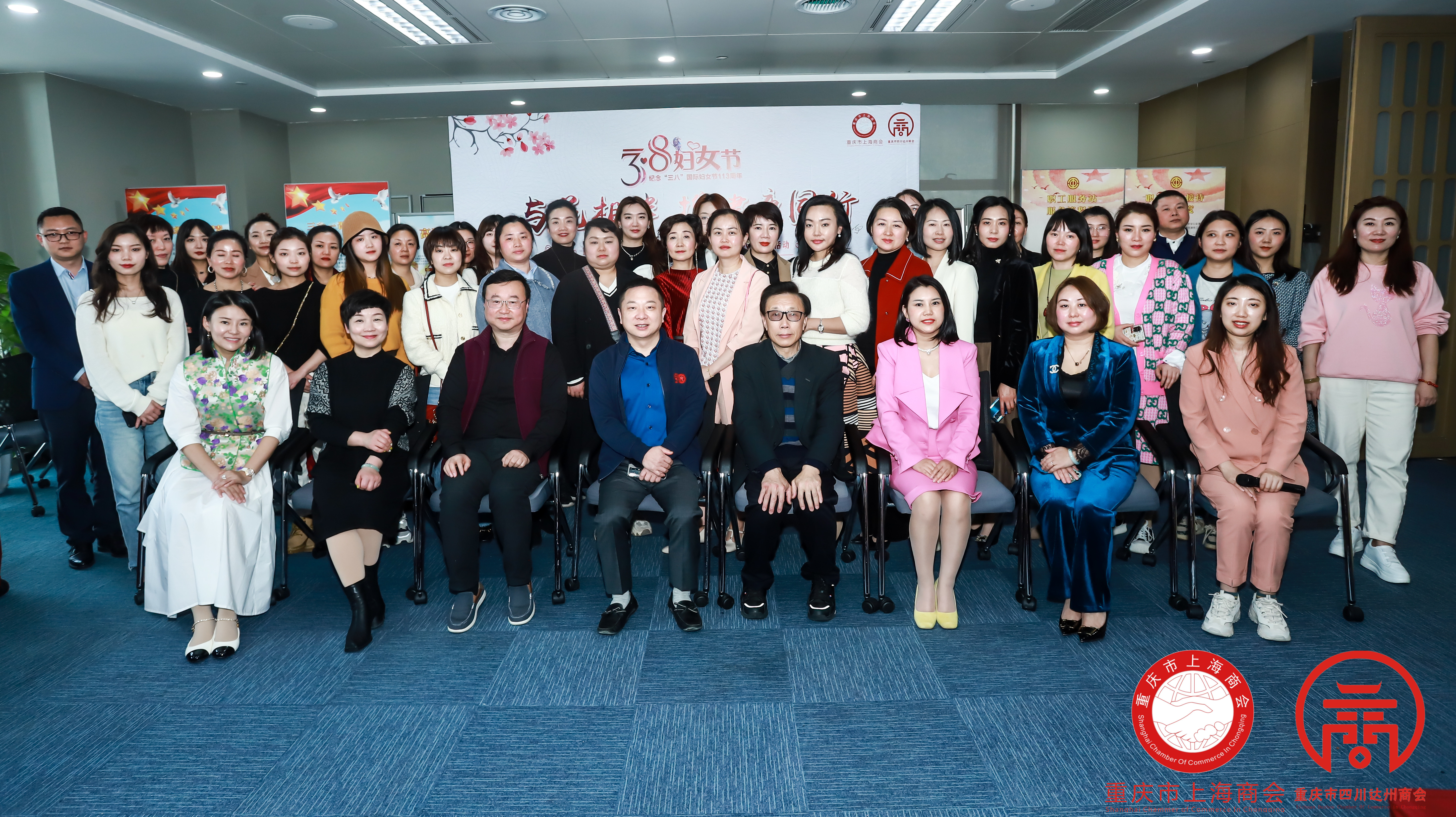 2023年3月9日下午,重庆市上海商会和重庆市四川达州商会在重庆国瑞中心共同举办“与花相伴·携健康同行”三八妇女节活动,庆祝“三八”国际妇女节113周年。我会常务副会长、妇联主席周媛;常务副会长、工业制造分会会长陈涛;常务副会长、慈善基金会理事长伍建英;副会长、大健康专委会主任江冰;副会长、妇联副主席龙均;秘书长姚庆伟,以及重庆市四川达州商会常务副会长叶浩、副会长郝海兰、秘书长范佳佳等共计60人参加了活动。活动由范佳佳秘书长主持。