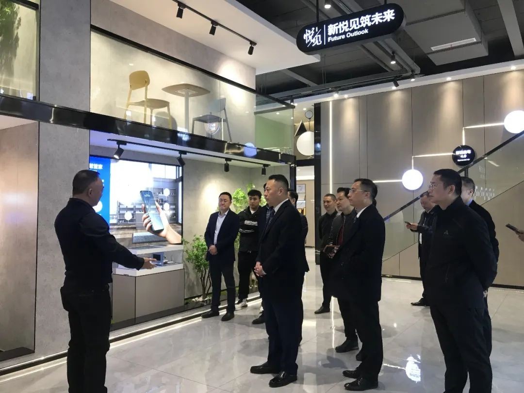 会前,在朱玉阳的陪同下,吕状文一行参观了新悦智慧大家居科创中心一楼综合展厅、二楼木居、三楼板居、四楼铝居 等产品展示,重点向大家介绍了公司运用5G高新技术打造的轻松驿站——首个碳中和铝居卫生间,有效降低建筑成本,减少废物排放,实现循环利用的新产品。